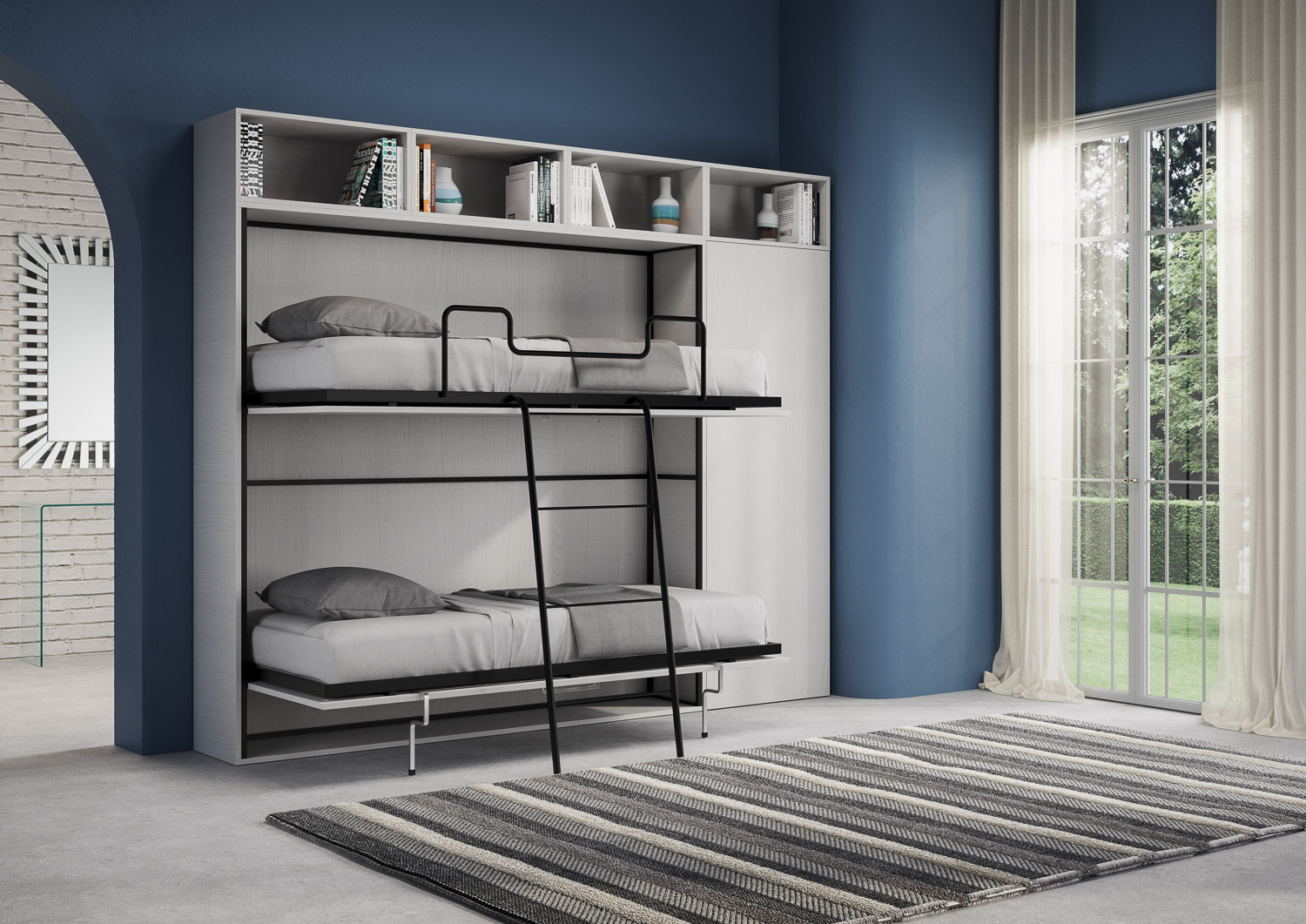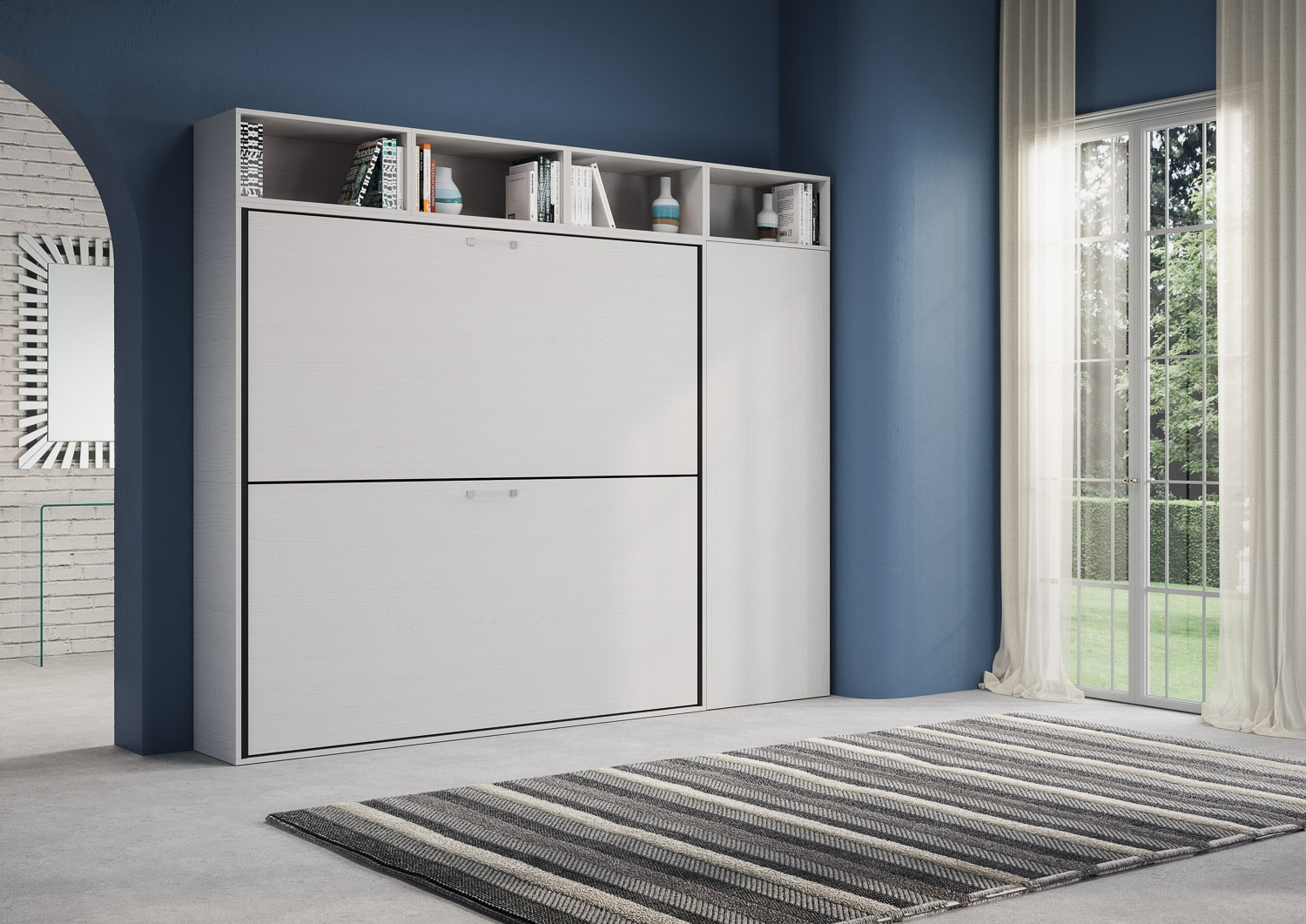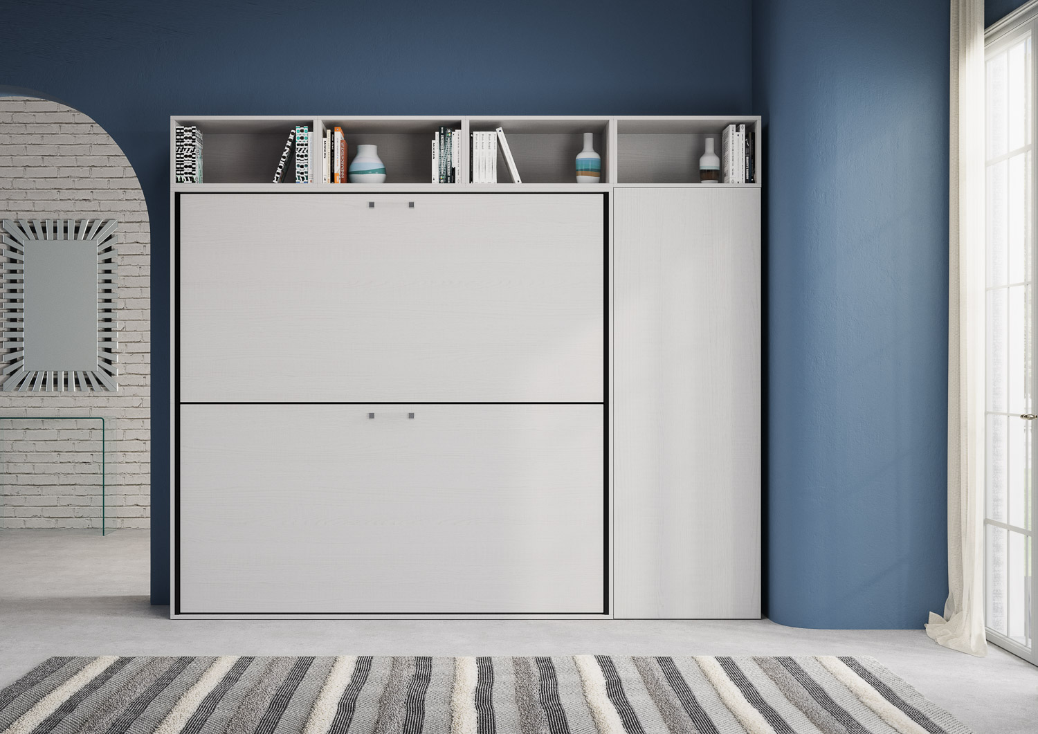 Matériel Kando I est un lit double escamotable avec une armoire à une porte et quatre compartiments de bibliothèque/armoire ouverts, où vous pouvez ranger tout ce dont vous avez besoin pour la zone de nuit, mais aussi pour la zone de jour. La principale caractéris