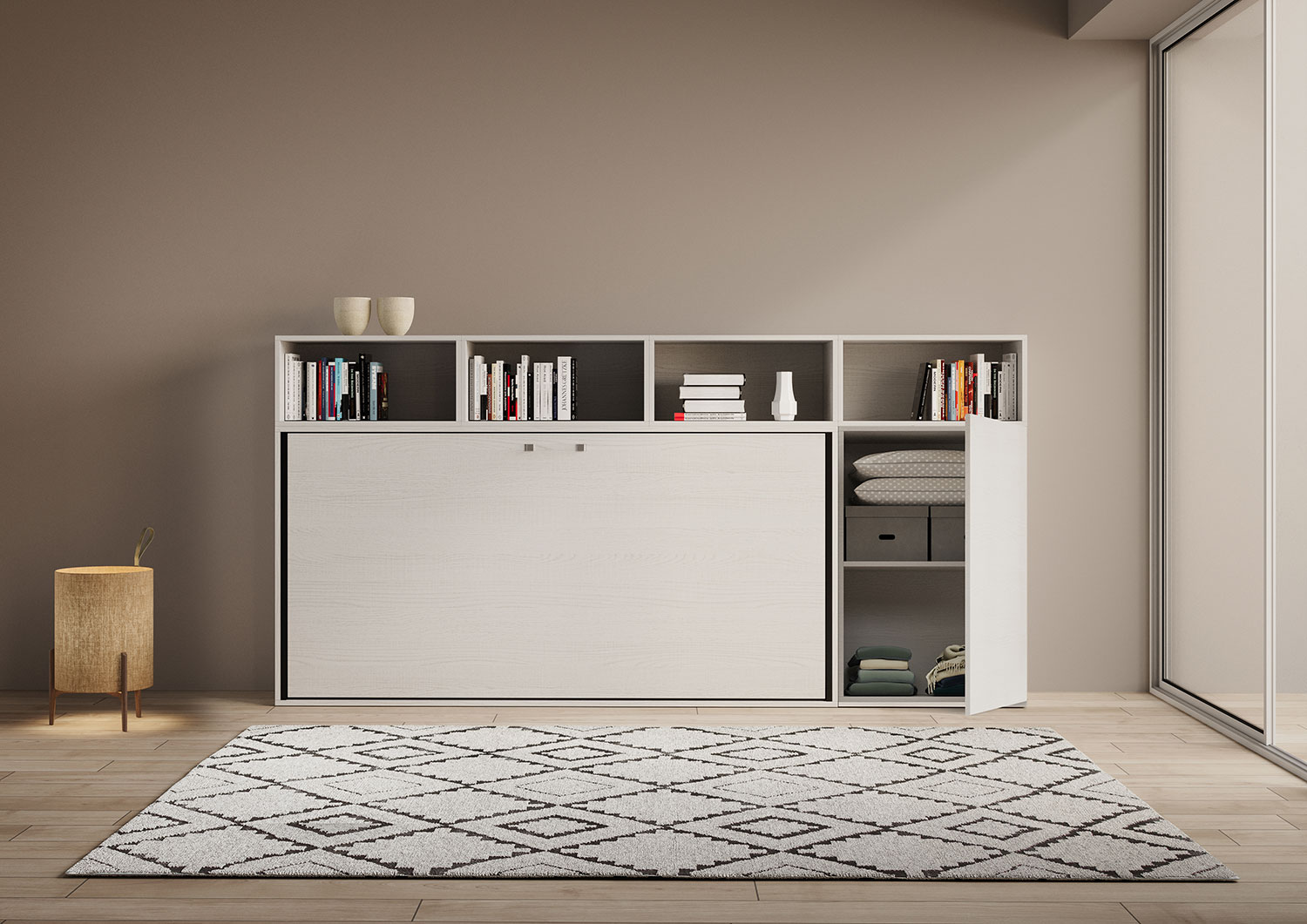 | Matériel | Kando A est un lit simple escamotable qui s'intègre à une composition de meubles (un compartiment avec une porte et une étagère intérieure et quatre compartiments ouverts). C'est une solution originale et fonctionnelle qui permet d'optimiser l'espace disp |
