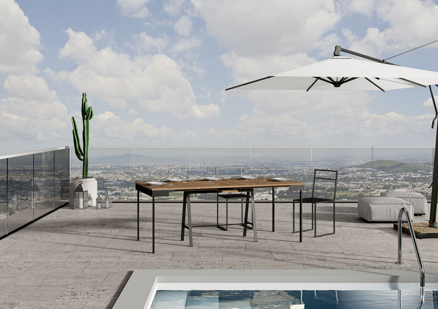 | Dimensions | L.90 P.40 H.77 cm (extensible jusqu'à 290 cm) |