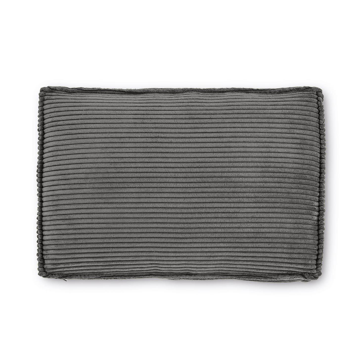 Cette nouvelle version du coussin Blok, au rembourrage en fibre 40x60cm, est recouverte d'une housse en velours côtelé gris avec fermeture zippée, donc déhoussable. De plus, ce modèle ajoute la large couture française qui définit le contour de la doublure. Il est possible de laver à la fois la housse et le rembourrage en machine. Touchez-le tendre.