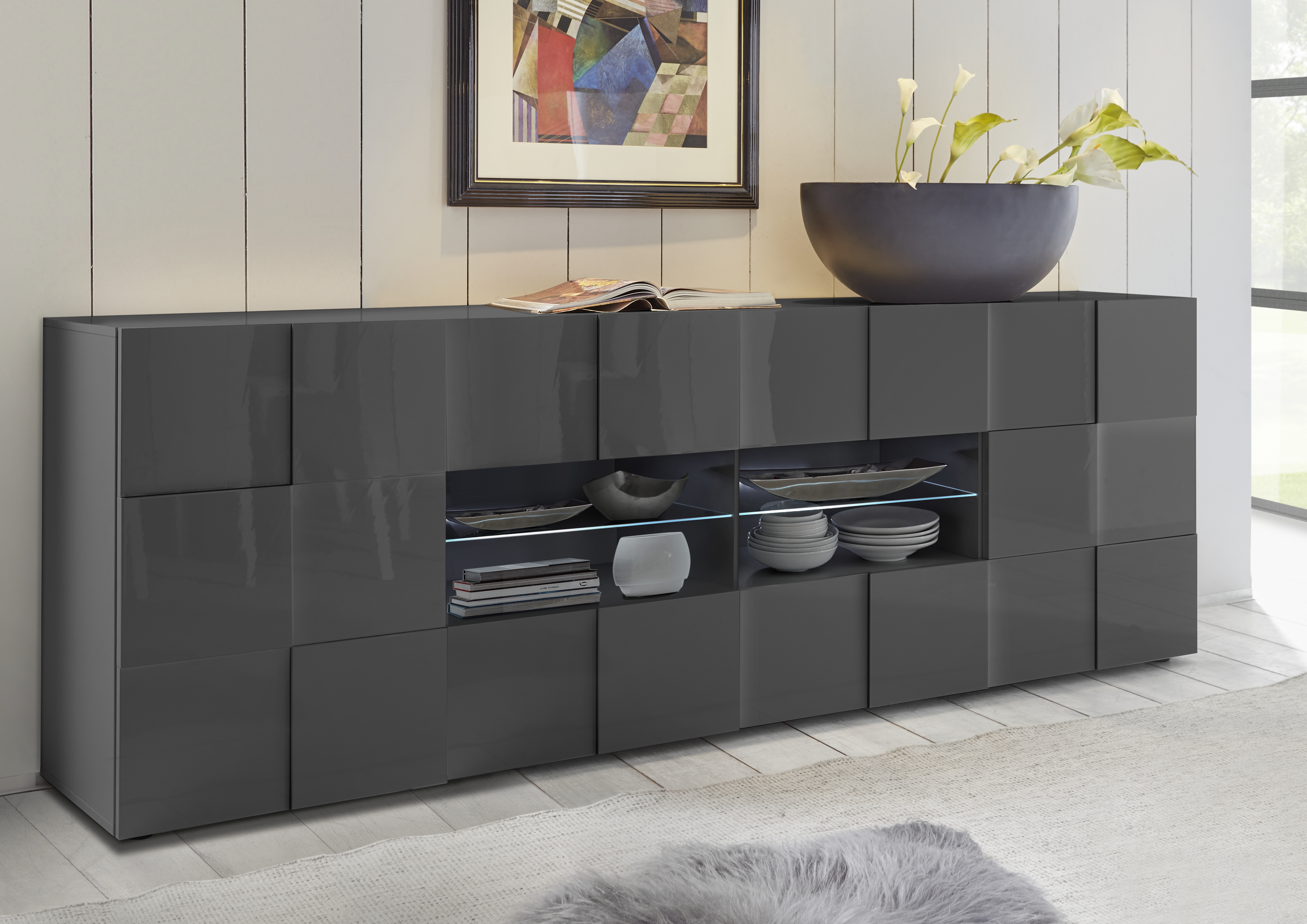| Finition | Gris laqué brillant |