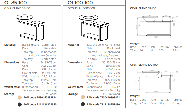 Cette unité polyvalente combine style et fonctionnalité uniques dans un design compact. Fabriqué en acier corten résistant, disponible dans les tailles 85 et 100 cm avec porte-bûches, une planche à découper en bois massif et un plateau accessoire pratique pour ustensiles et condiments.