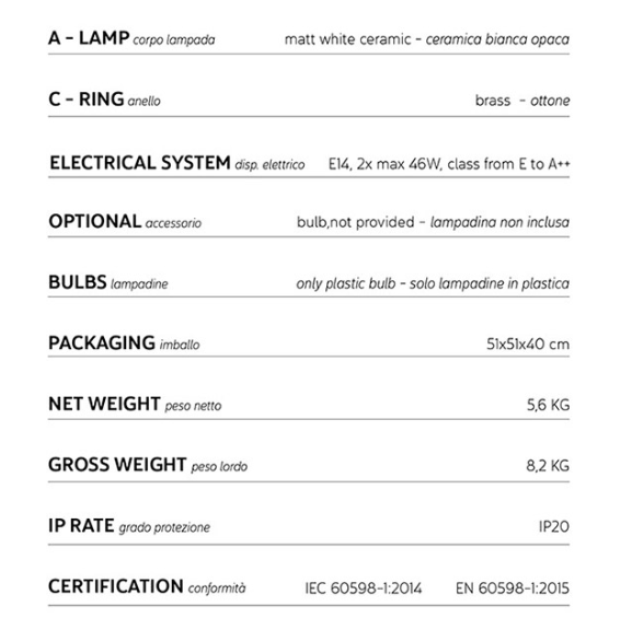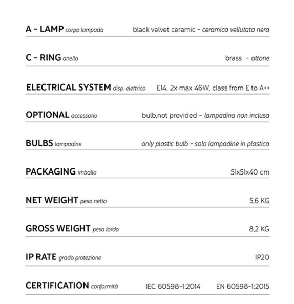 • Source de lumière : Incandescent et halogène, LED 2 x max 46W LED E14