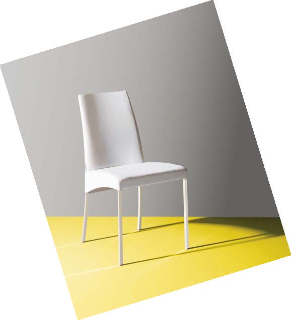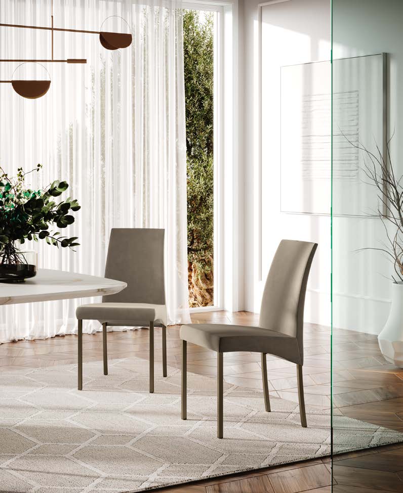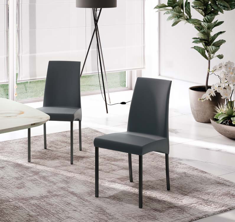 Chaise avec structure en acier laqué, assise et dossier rembourrés recouverts de cuir écologique, Econabuk, tissu Penny, tissu Bouquet et cuir écologique Premium.
