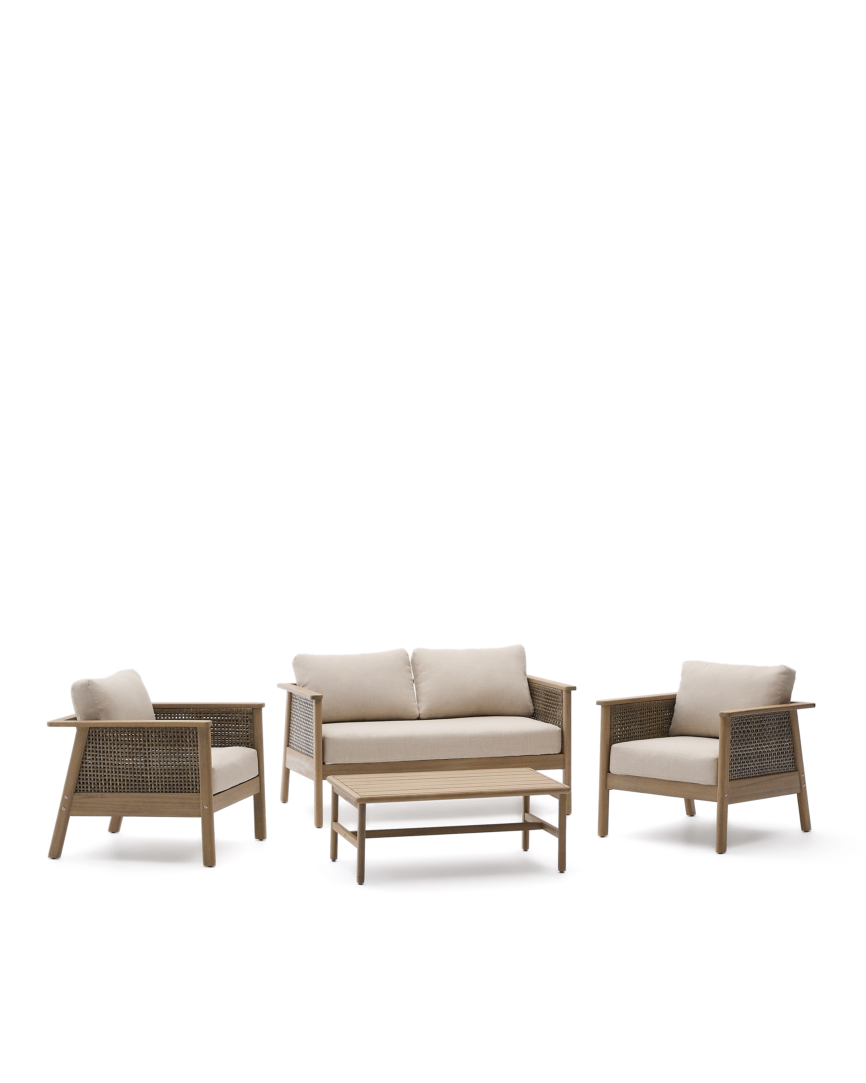 | Matériel | 70 % bois d'acacia (Acacia Mangium), 15 % osier synthétique, 8 % mousse (polyuréthane), 5 % tissu, 2 % sangle |