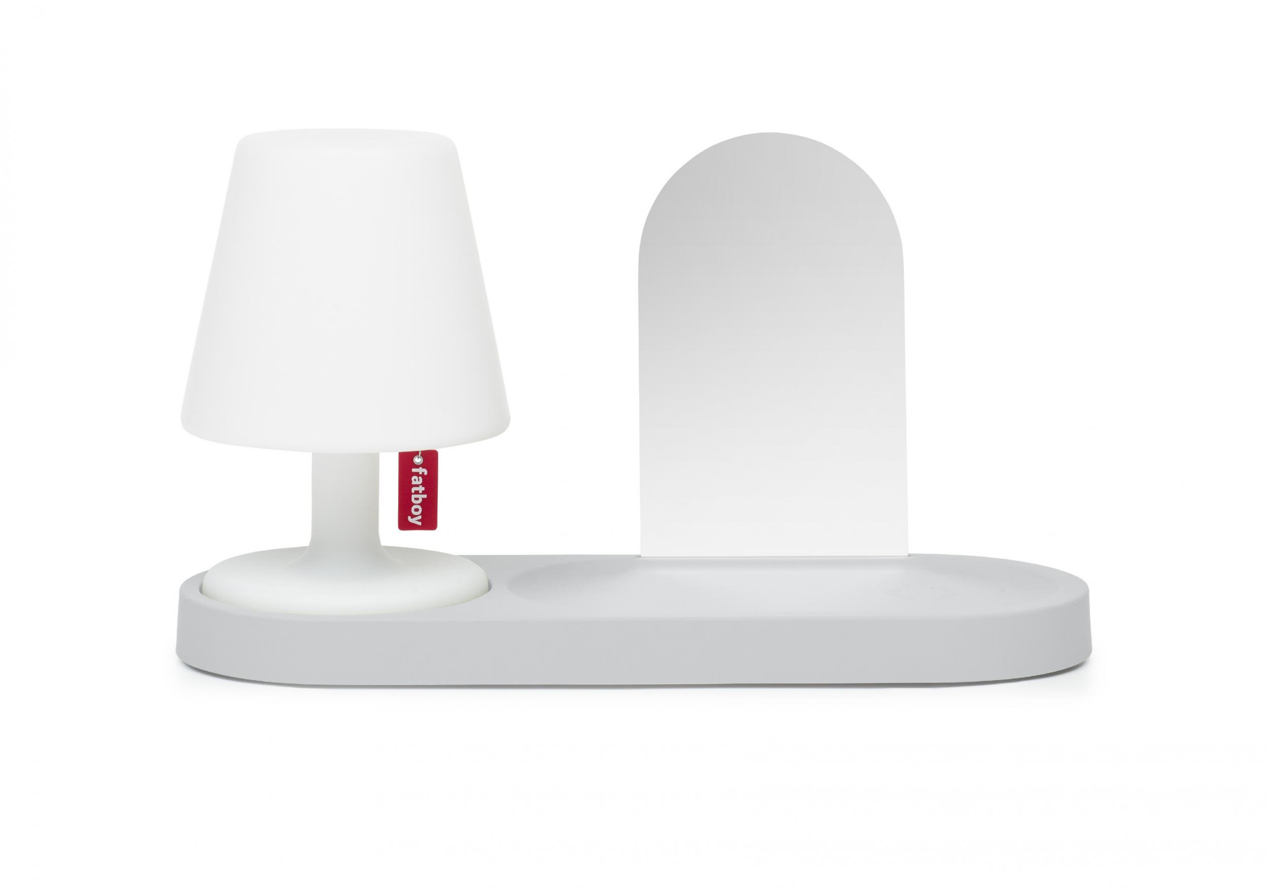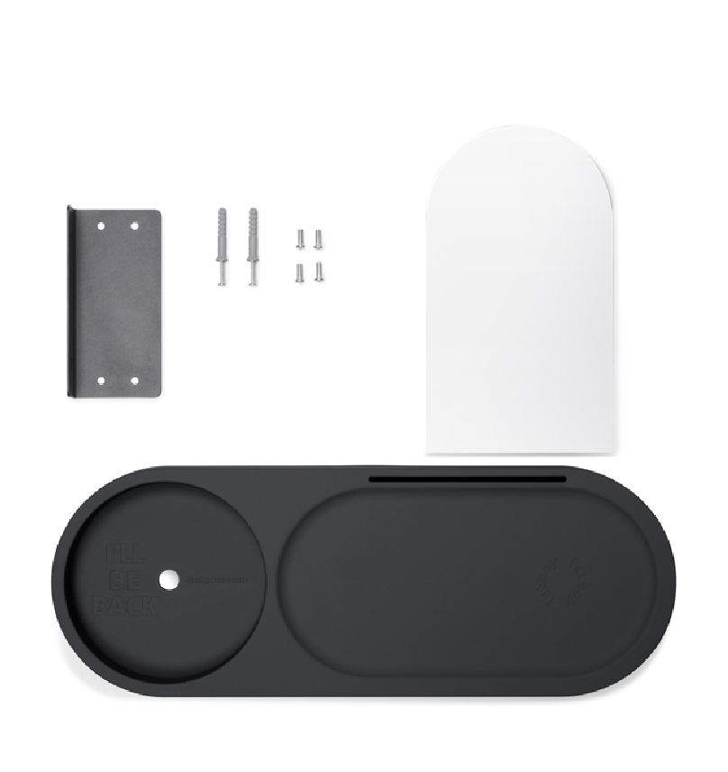 Matériau : ABS caoutchouté et base en acier enduit de poudre | Miroir plaqué argent | Dimensions avec miroir et support mural : 46 x 17,5 x 25,1 cm | Poids : 1,39 kg | Peut être fixé au mur ou posé sur une table | Lampe non incluse