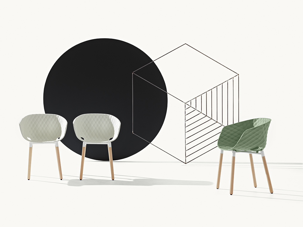 La chaise en bois Uni-Ka 601 présente un design unique qui allie le polypropylène à un effet matelassé irrésistible à l'œil et évocateur de confort !