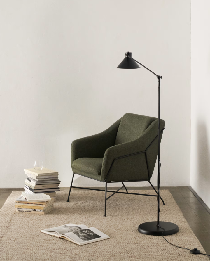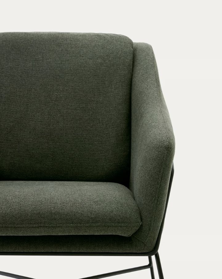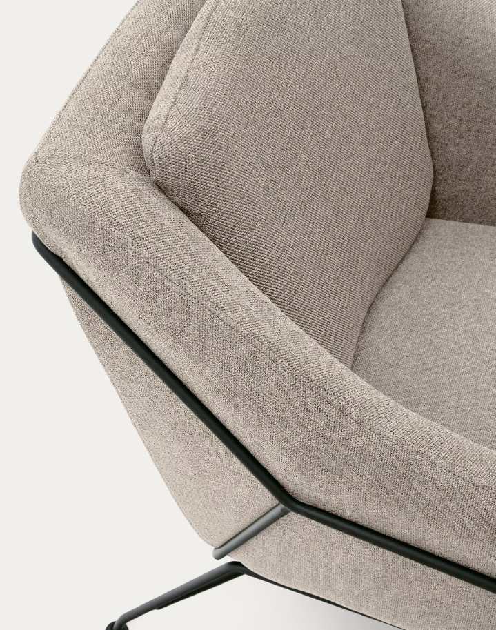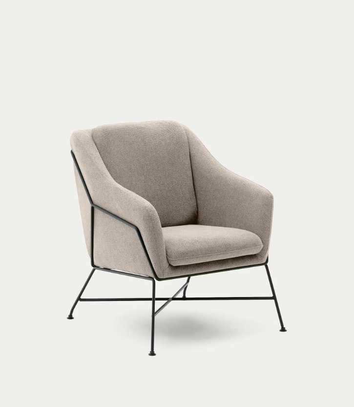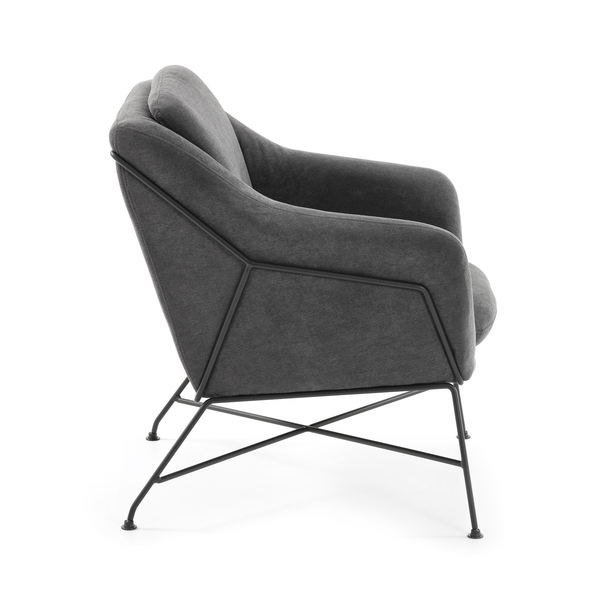 Le fauteuil Brida, recouvert de tissu graphite, suit la tendance de la structure apparente, typique du design contemporain, en plus de ses volumes asymétriques. Exempt d'ornements, il a un design basé sur la simplicité et la fonctionnalité. Choisissez des motifs !