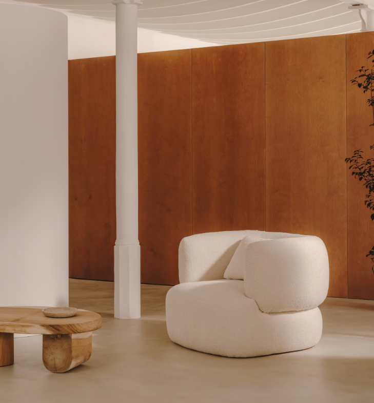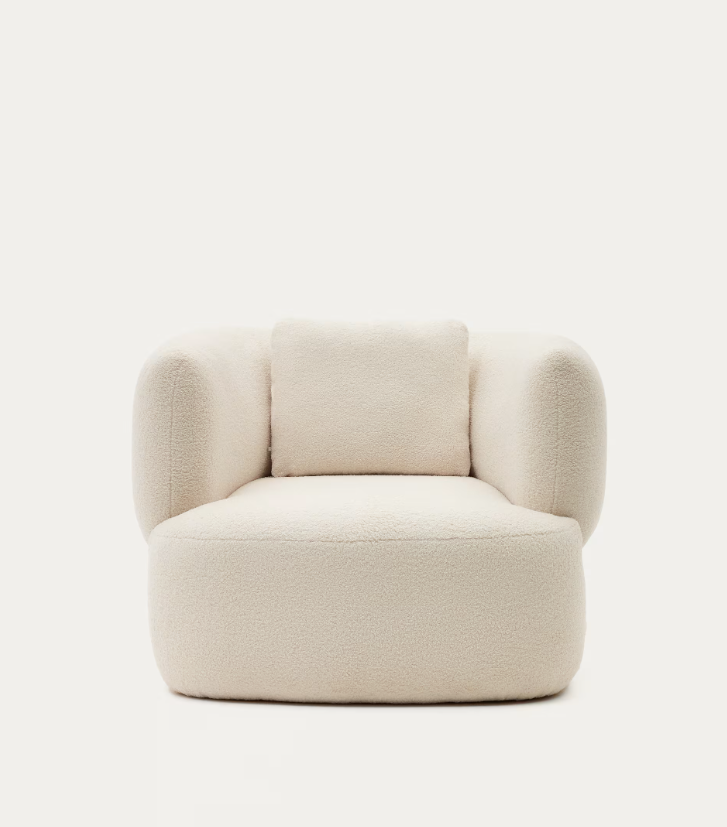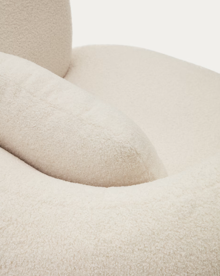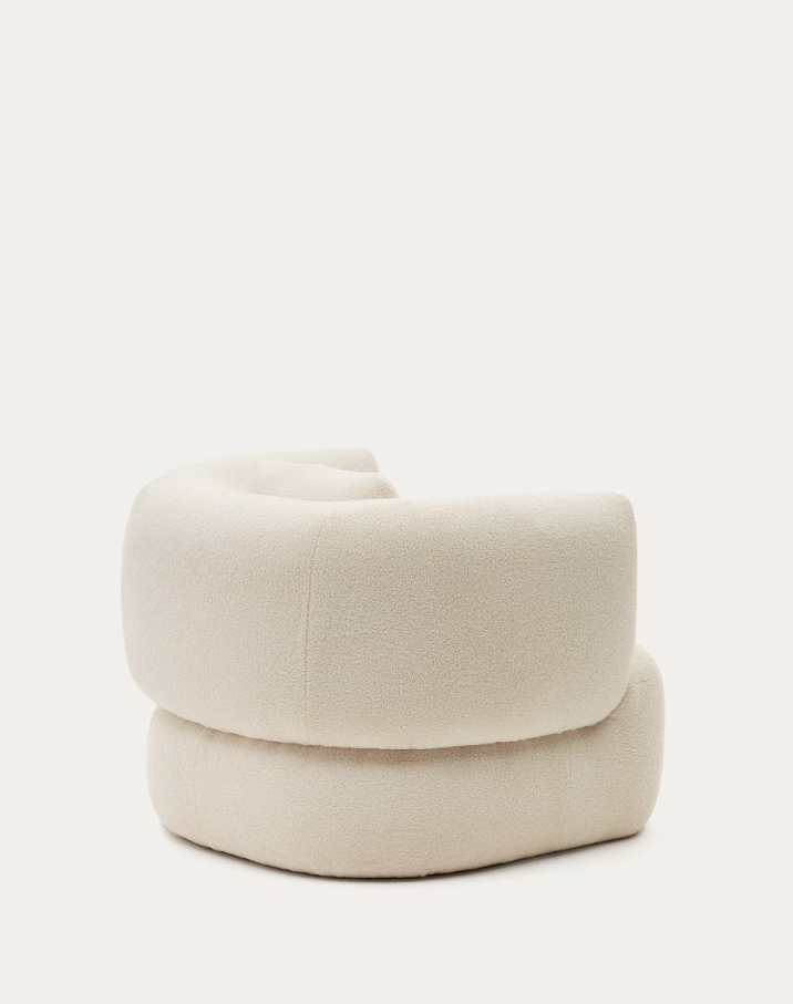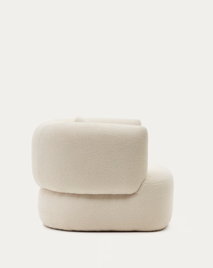 L'équipe Kave Home a créé le fauteuil Martina pour la détente et la protection de la planète. Ses lignes courbes et sa doublure 100 % polyester recyclé effet peau d'agneau en font la pièce idéale pour votre salon.