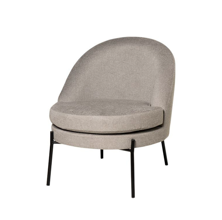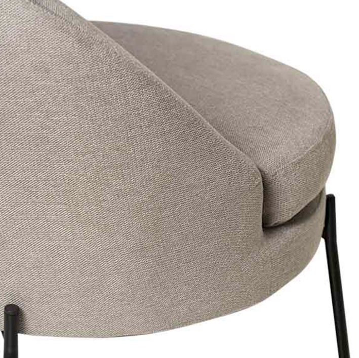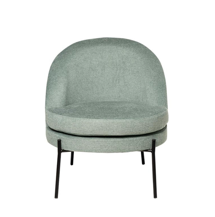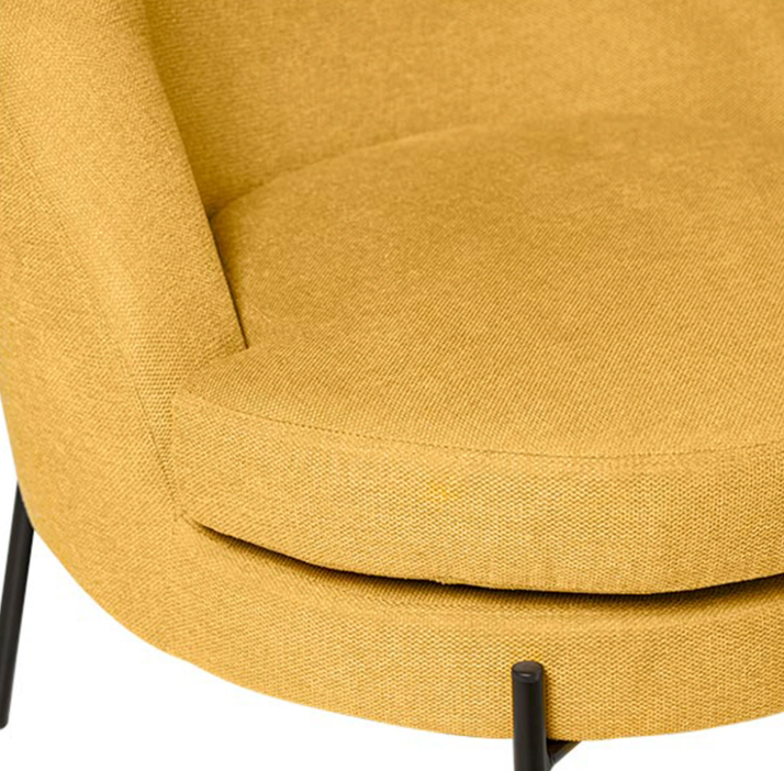 Les pieds fins en métal noir créent un contraste élégant avec le revêtement, ajoutant une touche contemporaine et sophistiquée au fauteuil.