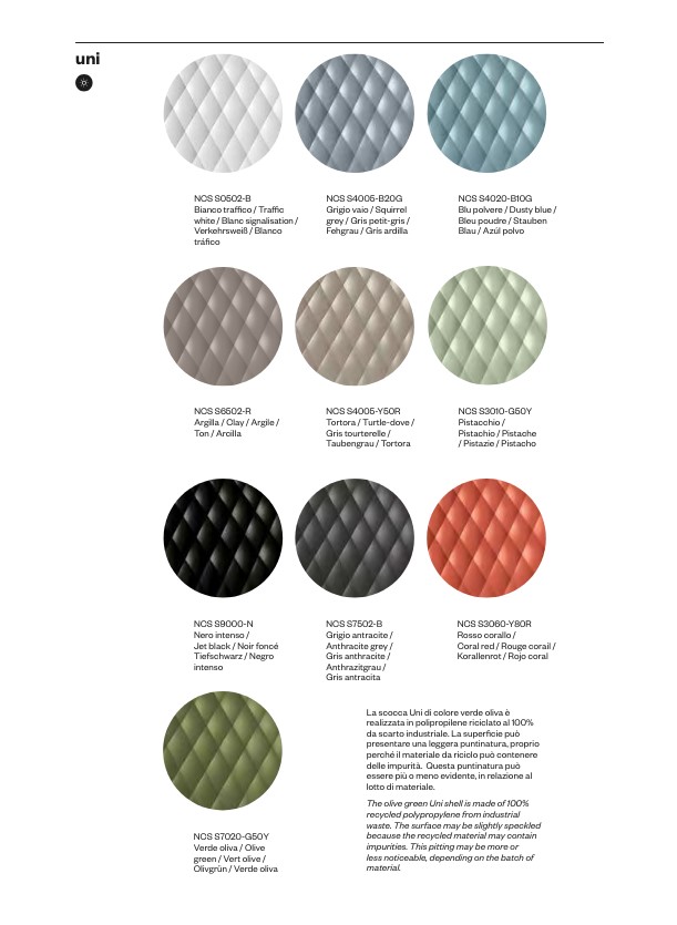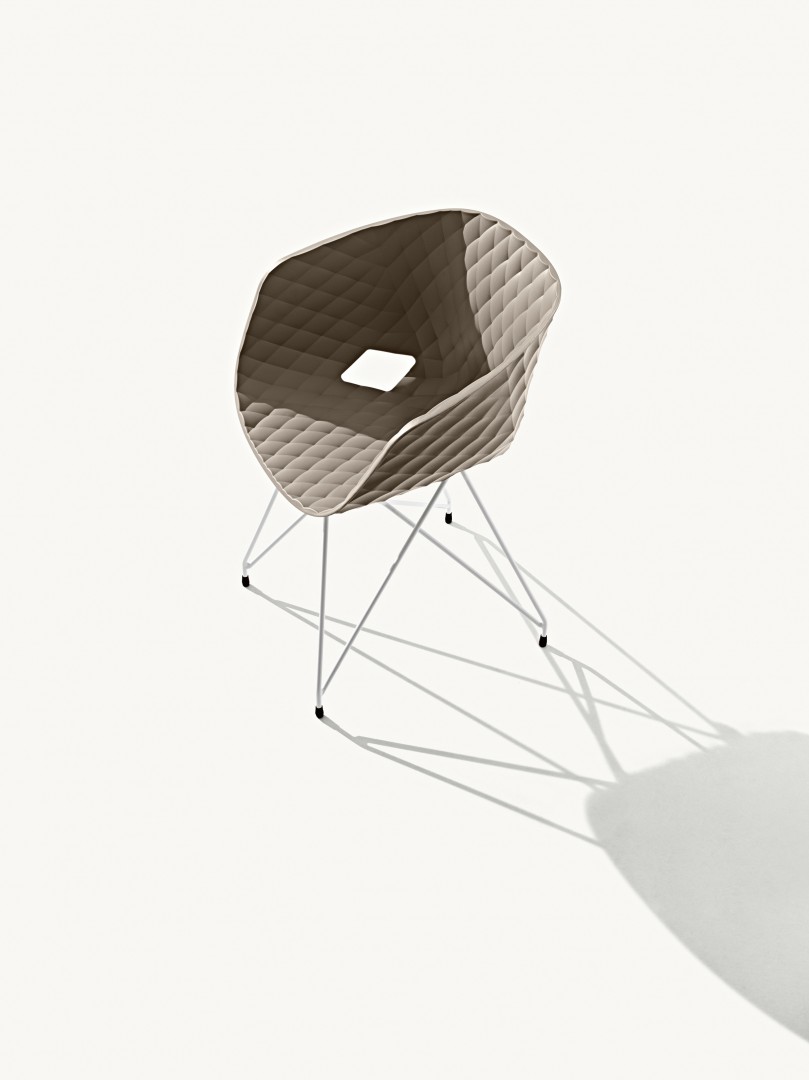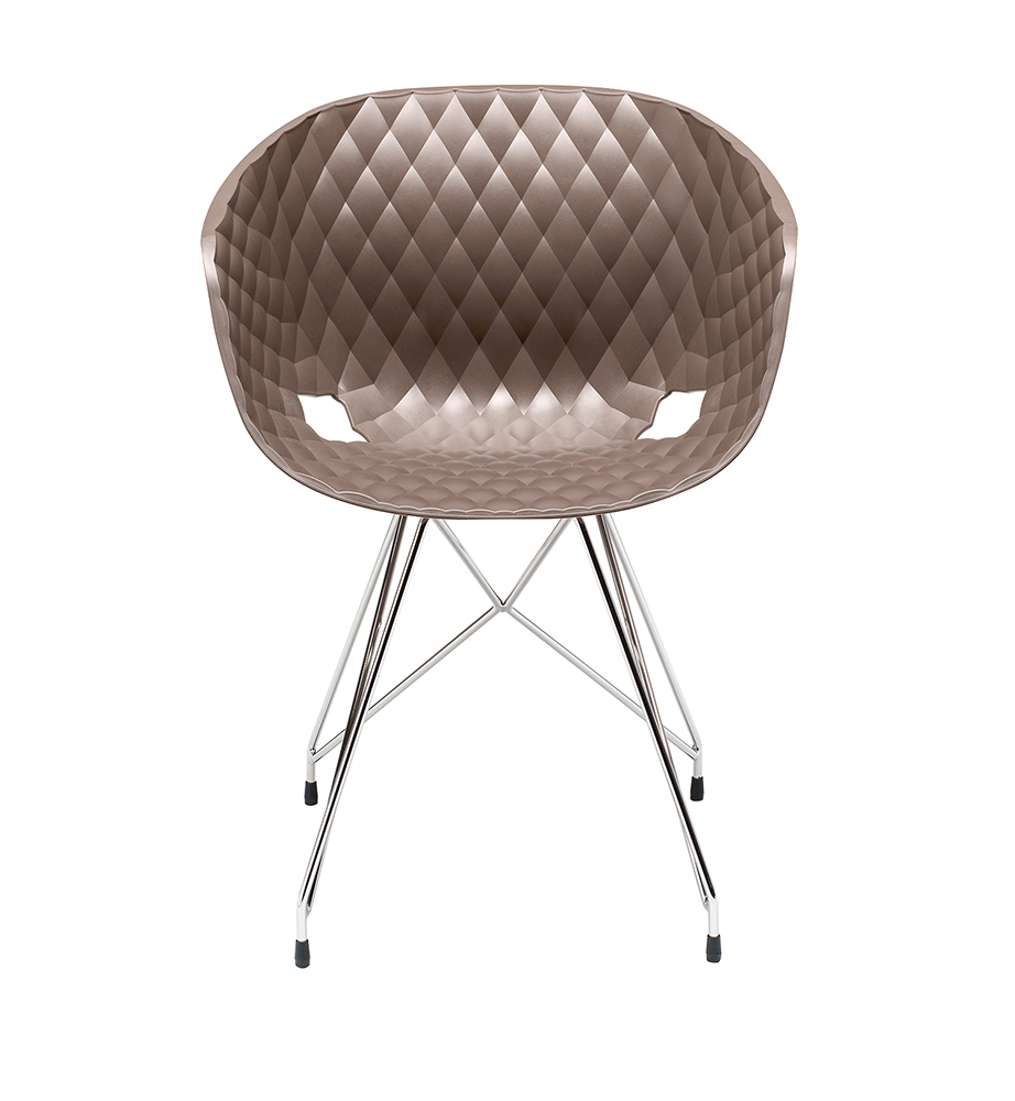Uni-Ka, évolution de la marque Metalmobil, est un fauteuil raffiné au design enveloppant conçu par Et al. Le corps est en polypropylène renforcé de fibre de verre et présente une texture élégante qui enrichit son esthétique.