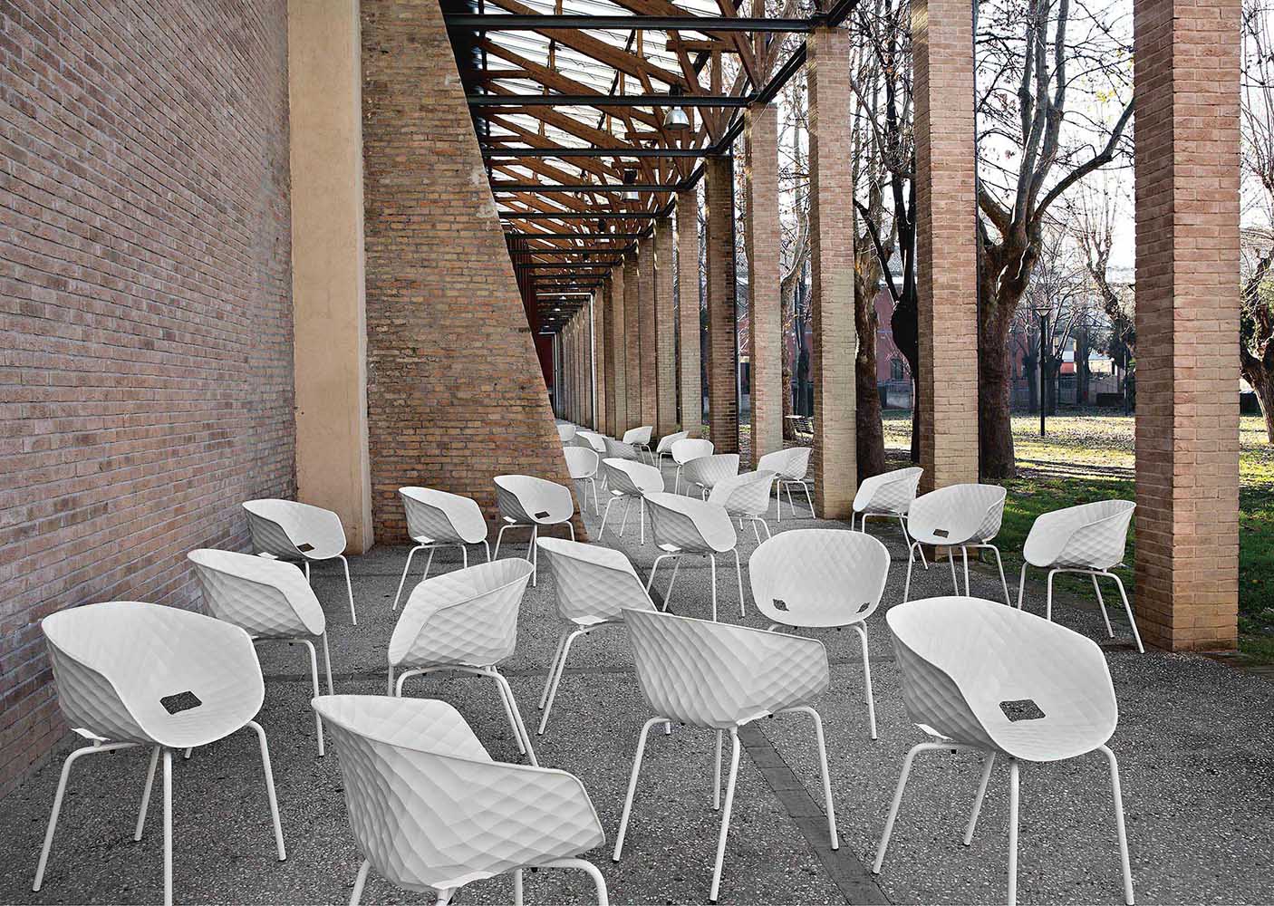 Uni-Ka, évolution de la marque Metalmobil, est un fauteuil raffiné au design enveloppant conçu par Et al. Le corps est en polypropylène renforcé de fibre de verre et présente une texture élégante qui enrichit son esthétique.