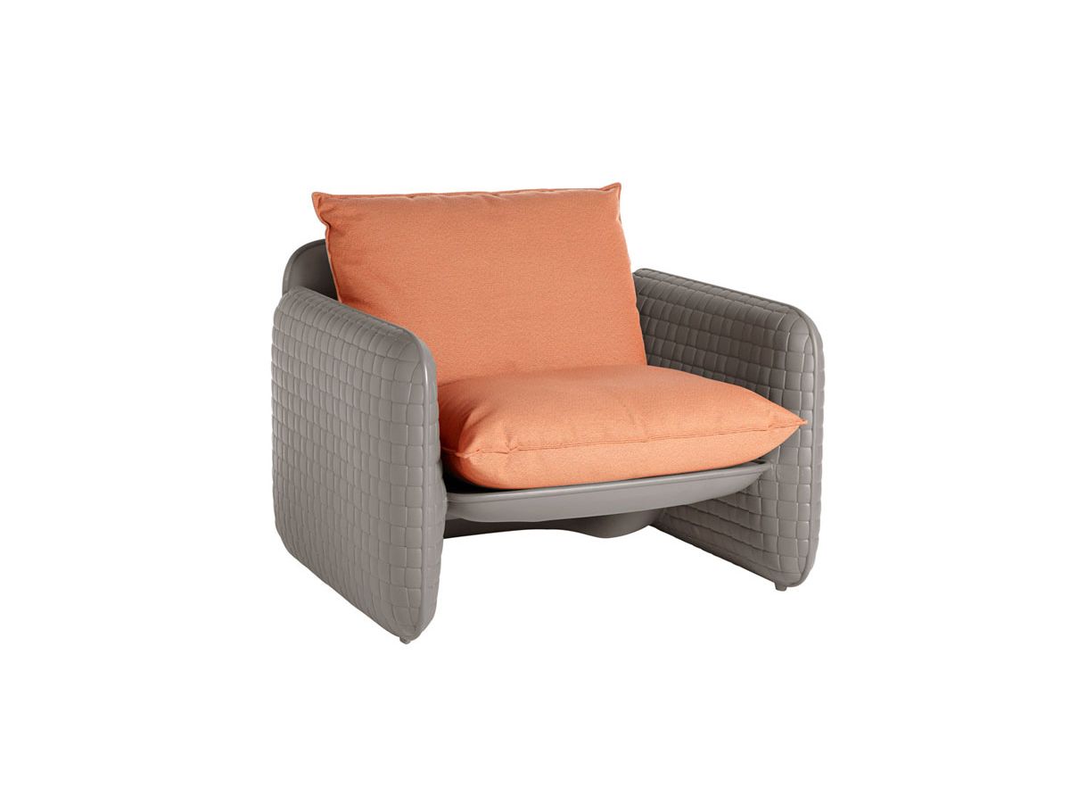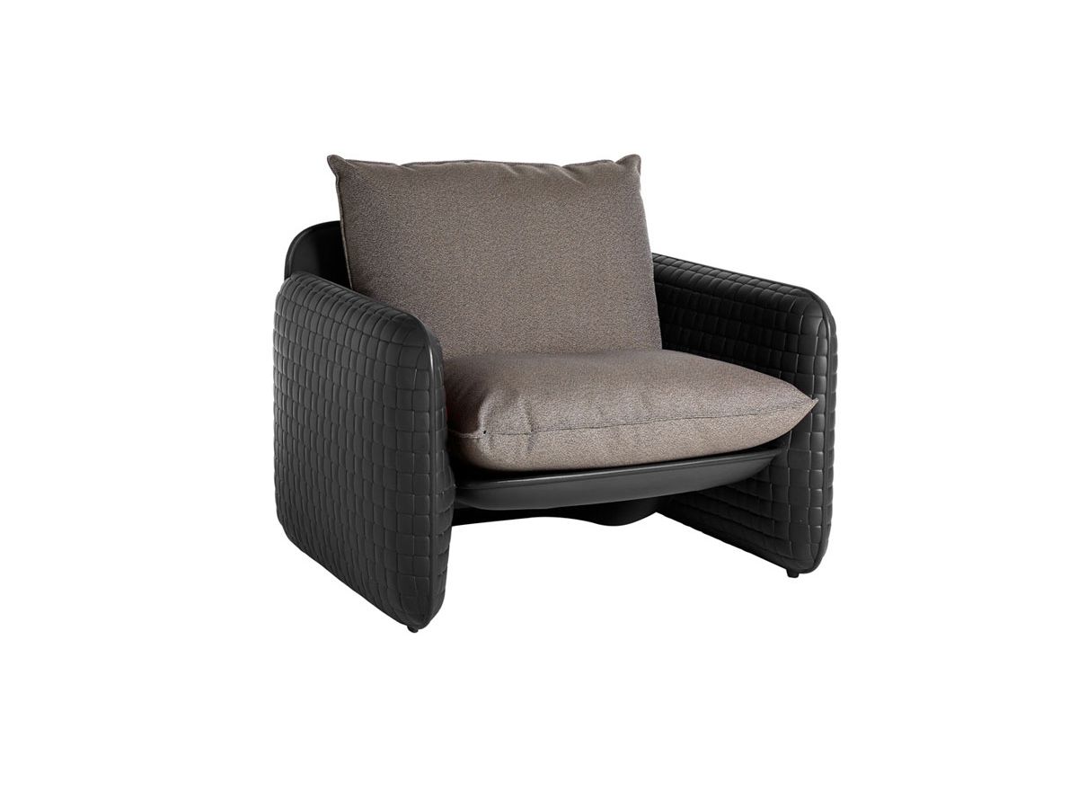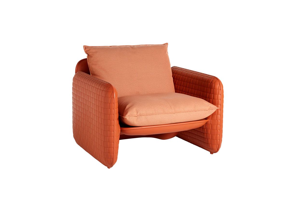 L'entrelacement du cuir revit dans toute la texture de la structure Mara, un fauteuil lounge dessiné par Lorenza Bozzoli. La texture unique est combinée avec les coussins en tissu imperméable et convient à une utilisation en extérieur. Le siège confortable rend Mara idéal pour les projets contractuels sur les toits, les jardins et la décoration intérieure. Mara est une collection également composée du canapé deux places Mara et d'un pouf Mara Pouf.Dimensions 106 x 94 h 82 cm - assise H 52