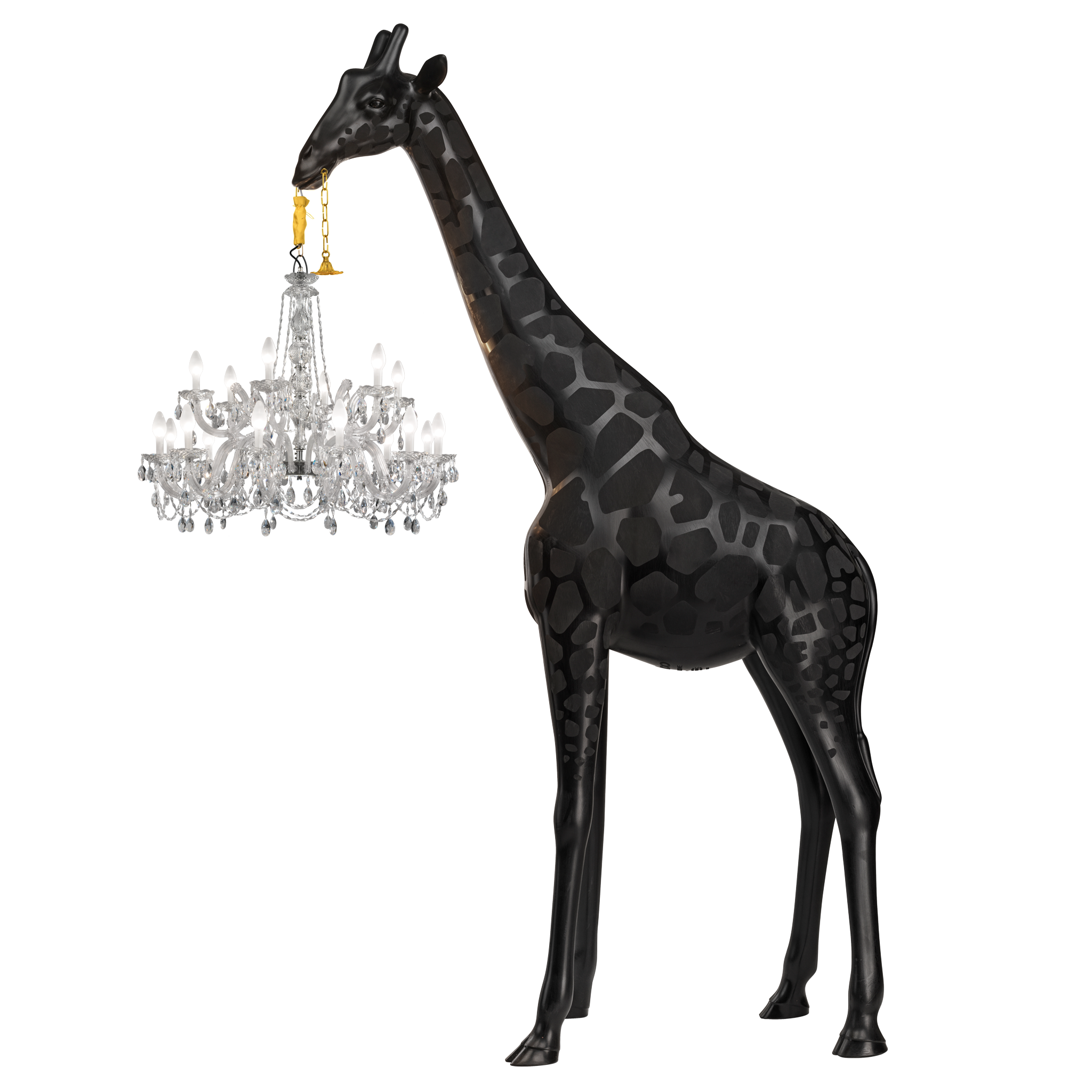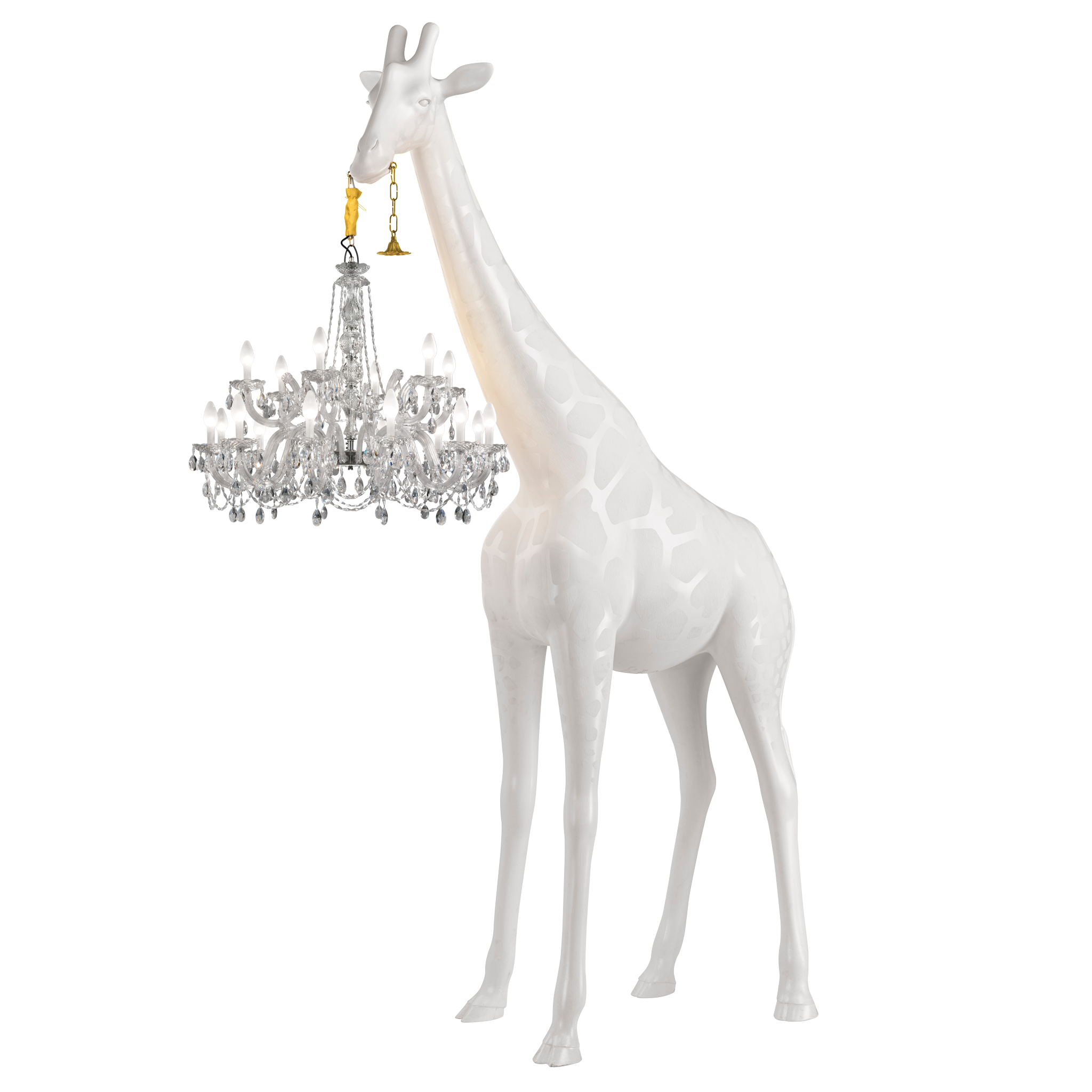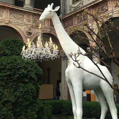 L'amour rend les gens fous, tout le monde le sait. Mais que se passera-t-il lorsque la flèche de Cupidon touchera une girafe de 4 mètres de haut ? Les croquis visionnaires de Marcantonio y ont répondu en créant Giraffe in Love, une girafe rêveuse tenant un lustre classique de style Marie-Thérèse. Giraffe in Love Indoor est une girafe de la taille d'une vraie jeune girafe, adaptée à une utilisation en intérieur uniquement.