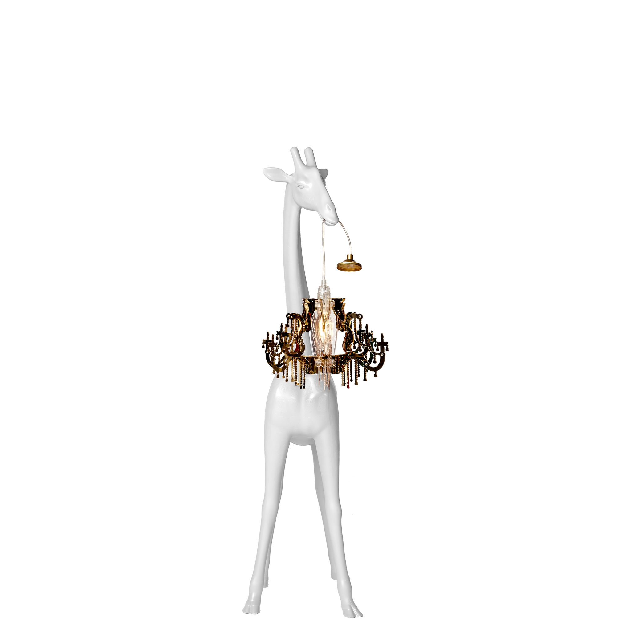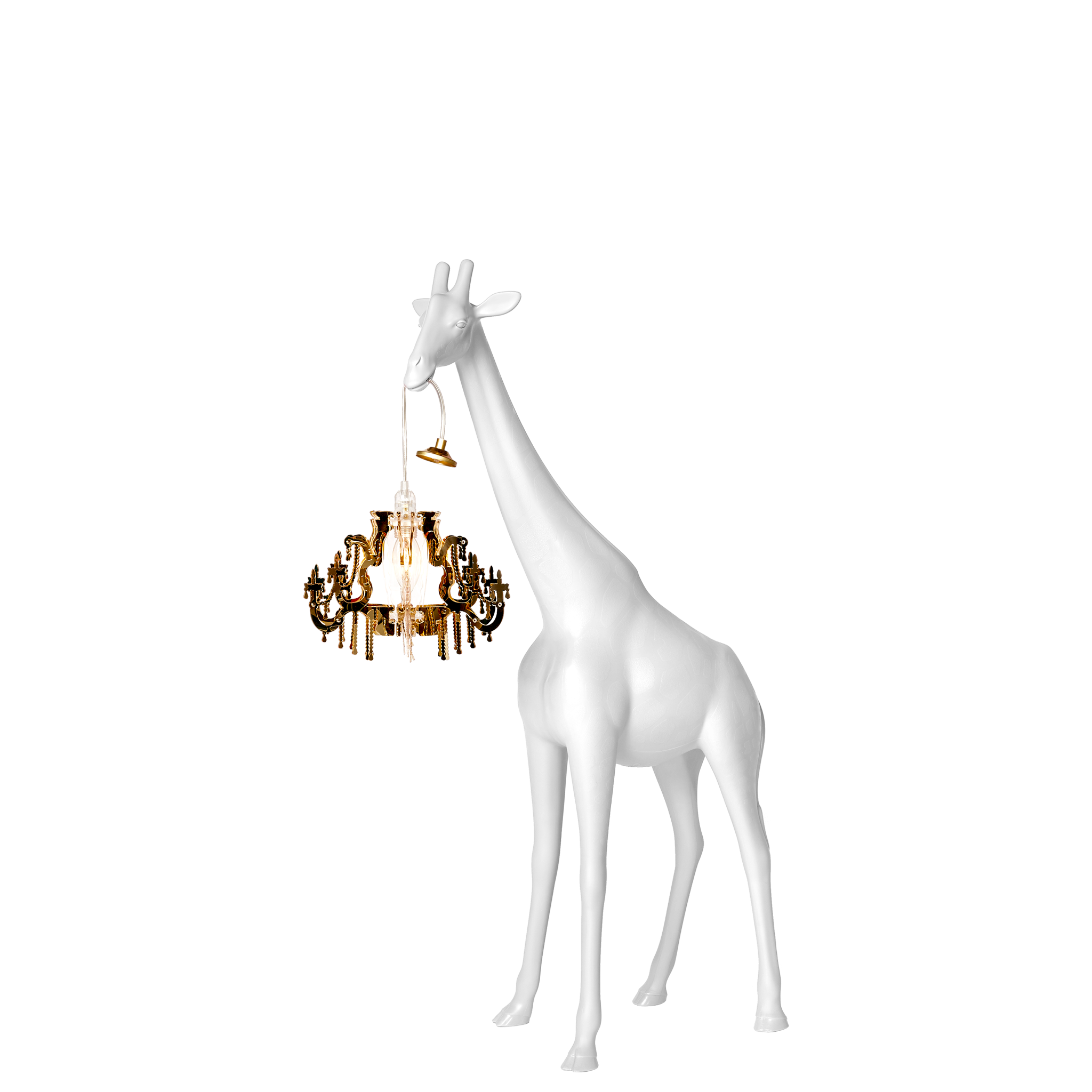 Giraffe In Love XS, dessinée par Marcantonio, est une girafe tenant un lustre de style Marie-Thérèse, dans sa version miniature. Le mpada devient un objet design polyvalent et ludique qui saura satisfaire en évacuant tout stress de votre bureau.
