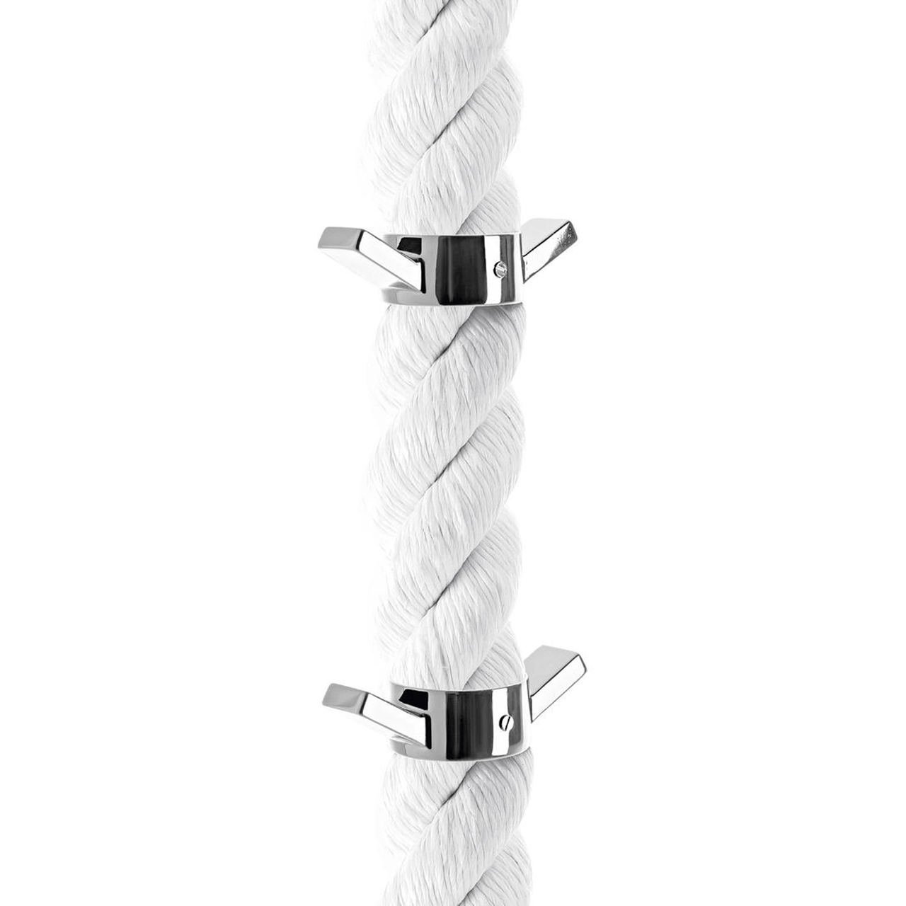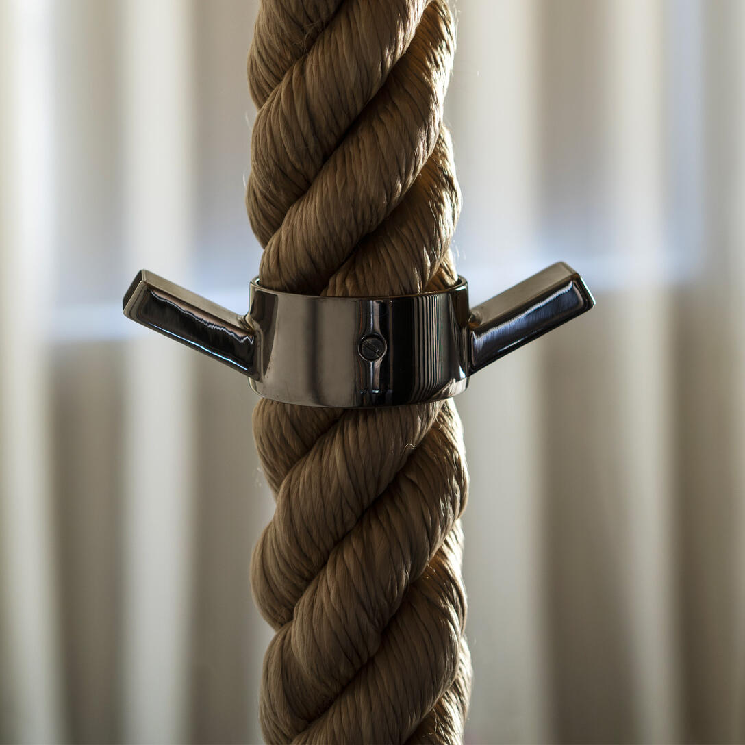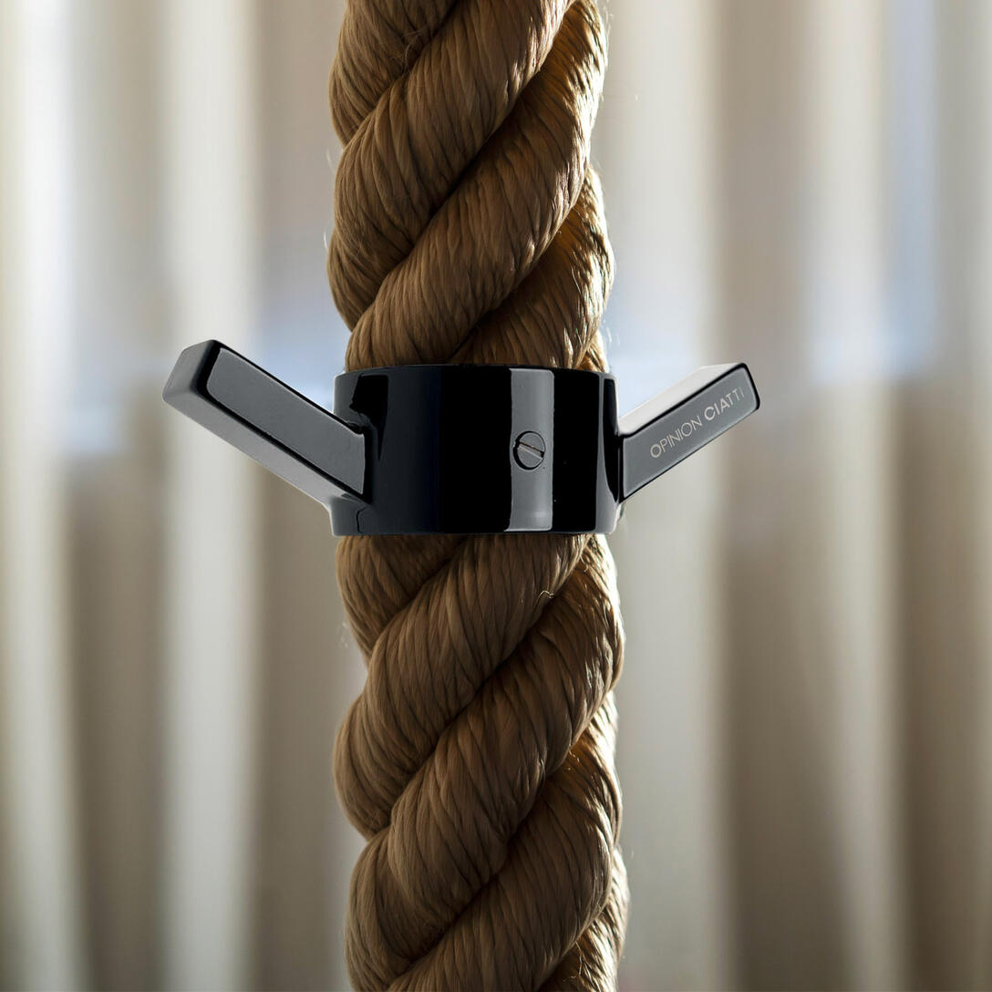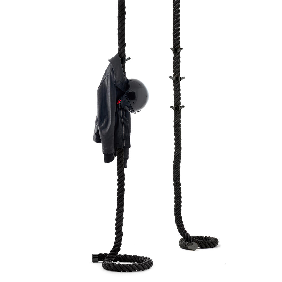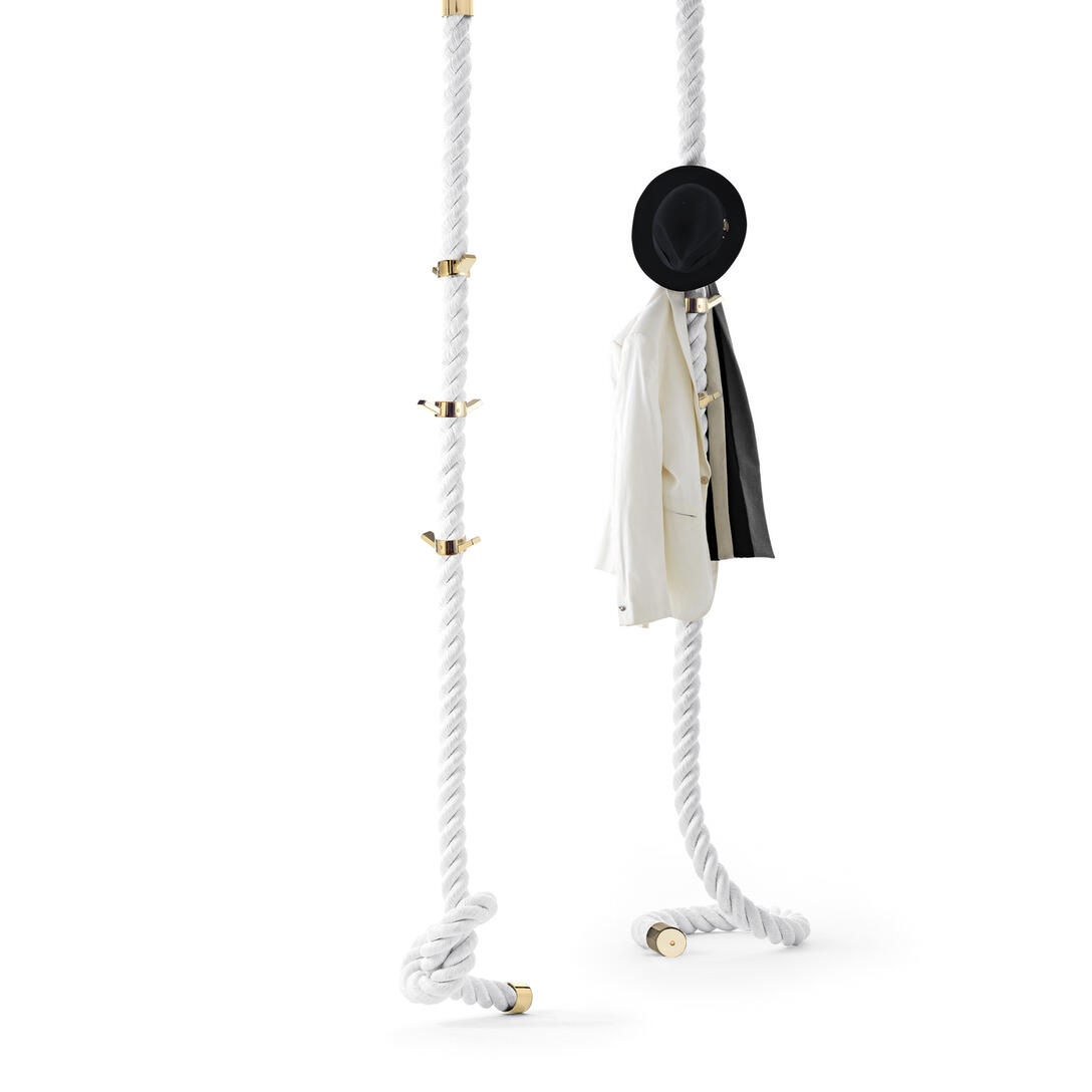 Une ligne entre la terre et le ciel, une voie d'évasion, l'équilibre harmonieux du yin-yang, même le souvenir d'une traversée et d'un atterrissage dans un port sûr. Symboles et citations spontanés pour un objet presque prêt à l'emploi qui s'habille de design. Une corde suspendue pour accrocher les cintres. Antichambre, salle de bains, chambre d'enfants, chambre, bureau, restaurant.