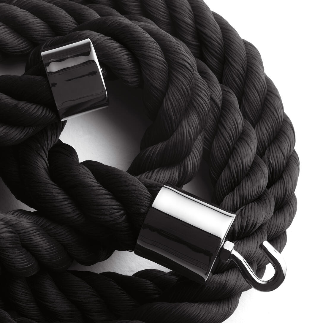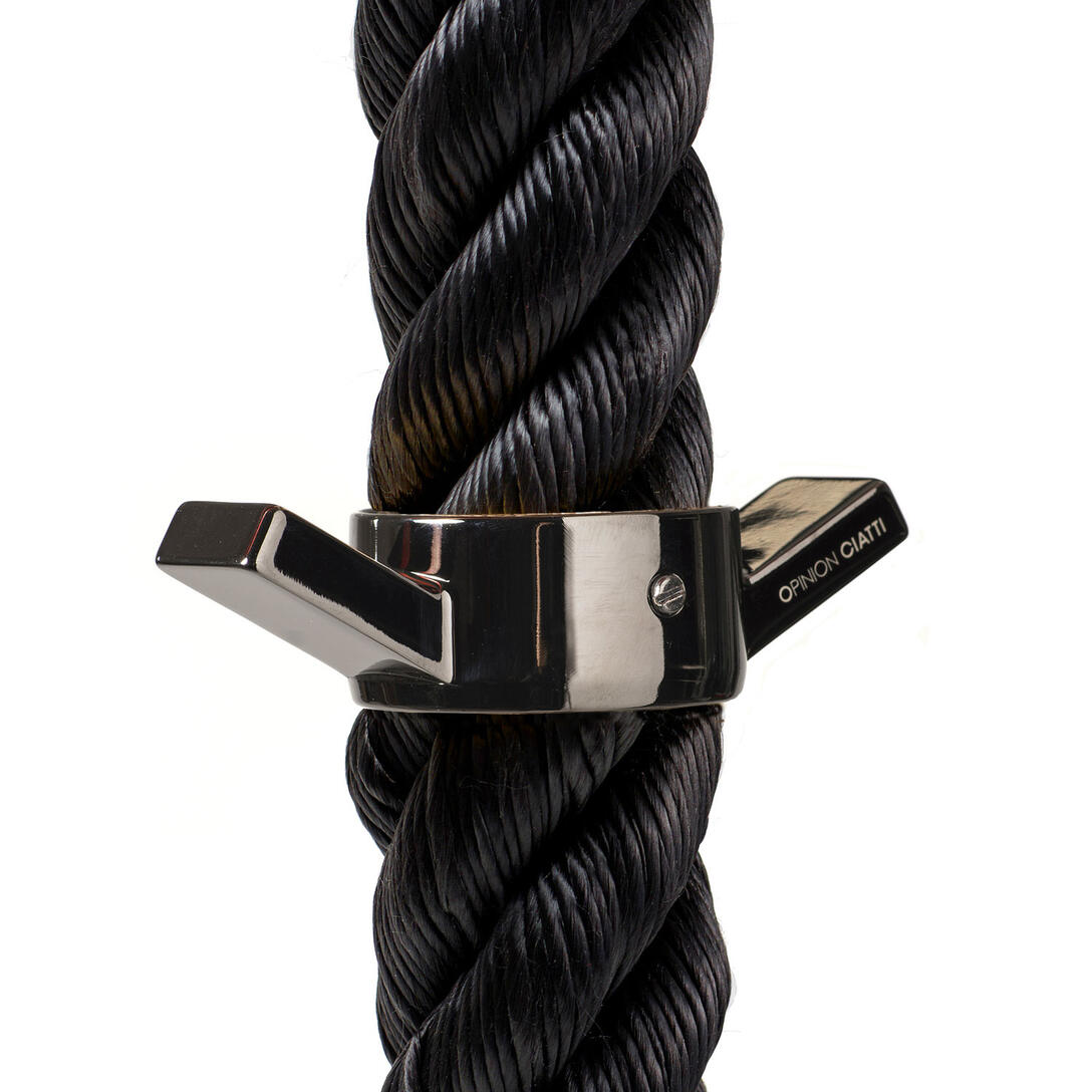 Finitions: corde nautique blanche ou noire, accessoires en métal peint RAL 9011 noir, nickel noir, chrome, or 24 carats.