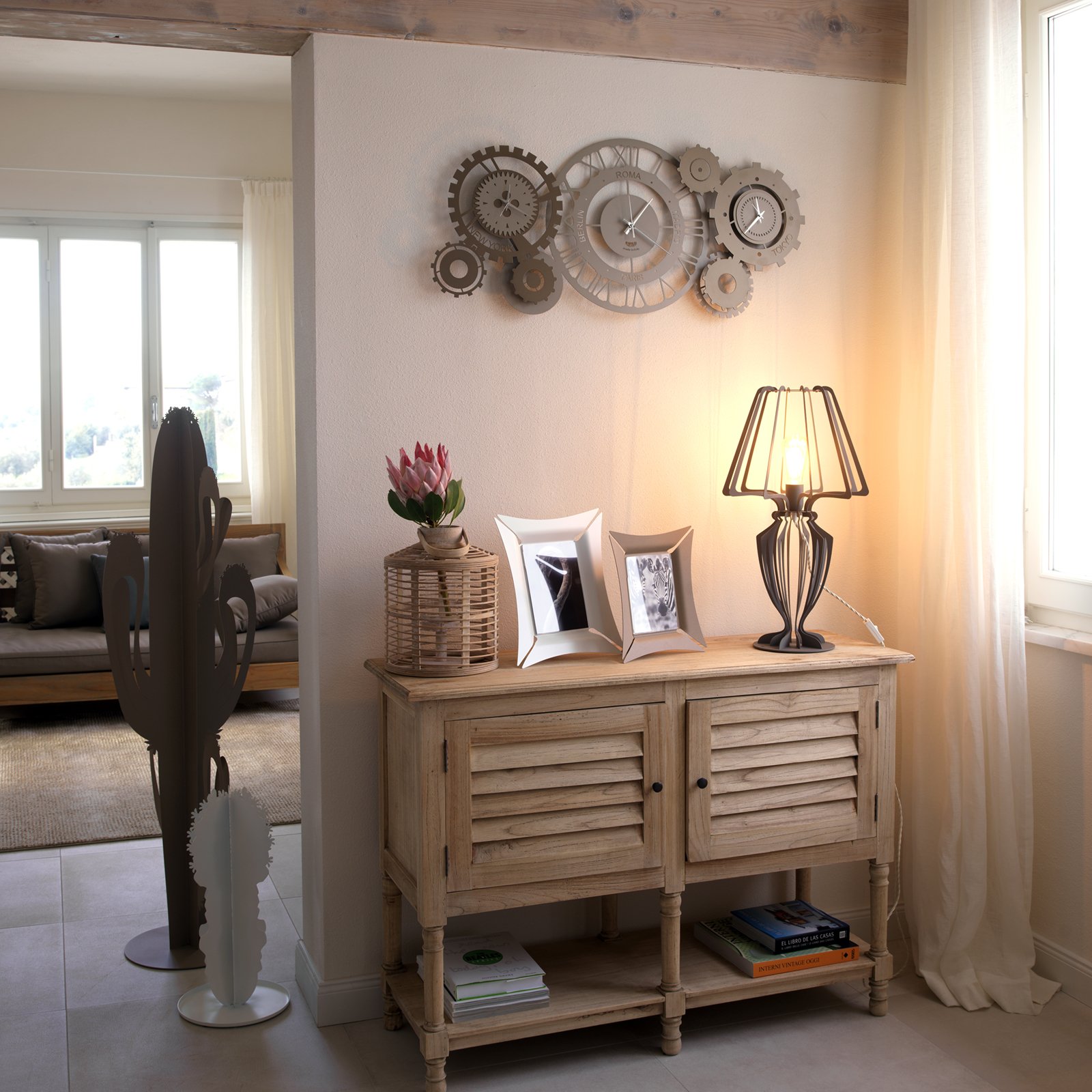 L' horloge Fuso Meccano 3112 d'Arti e Mestieri est une horloge murale au caractère industriel et moderne, inspirée par l'esthétique des structures mécaniques et des systèmes modulaires. Un accessoire décoratif unique qui se distingue par sa forme allongée et ses détails géométriques , parfait pour meubler avec personnalité des environnements contemporains.