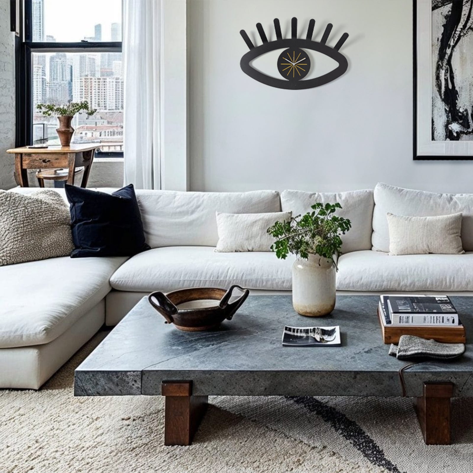 Elle se distingue par sa forme résolument atypique et son fort impact visuel. Inspirée par la symbolique de l'œil, cette horloge transforme un objet du quotidien en un objet décoratif original et contemporain.