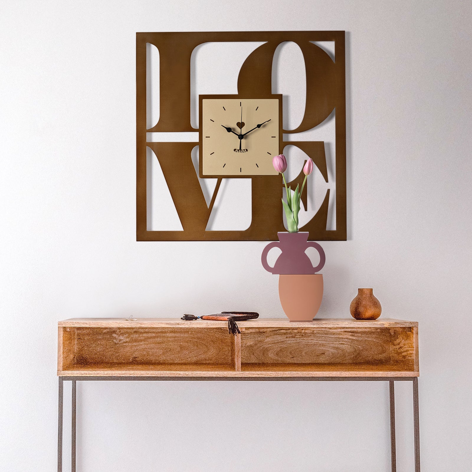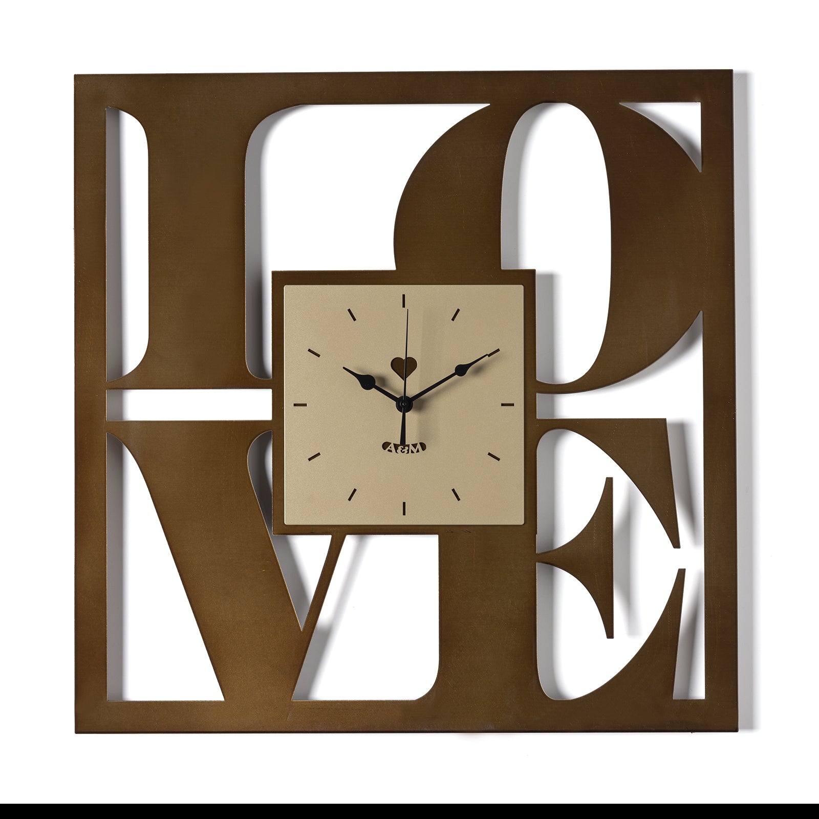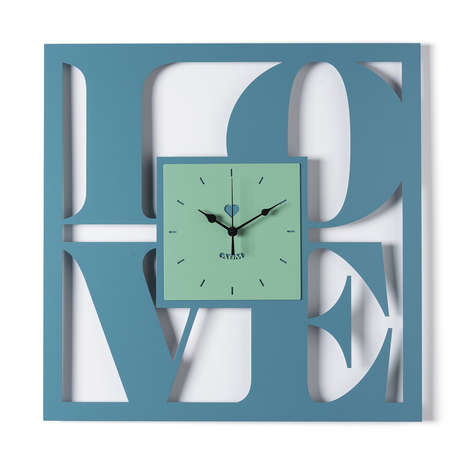 Le cœur du projet est le petit cadran central, où les heures sont indiquées par des lignes fines et épurées. Au centre, un délicat symbole en forme de cœur apparaît juste au-dessus de l'intersection des aiguilles, soulignant discrètement le message émotionnel de l'objet. Tout autour, le mot « Love » est gravé grâce à des perforations nettes et précises : les lettres « L » et « O » apparaissent en haut du carré, tandis que les lettres « V » et « E » sont positionnées en bas, créant un effet graphique équilibré, contemporain et visuellement saisissant.