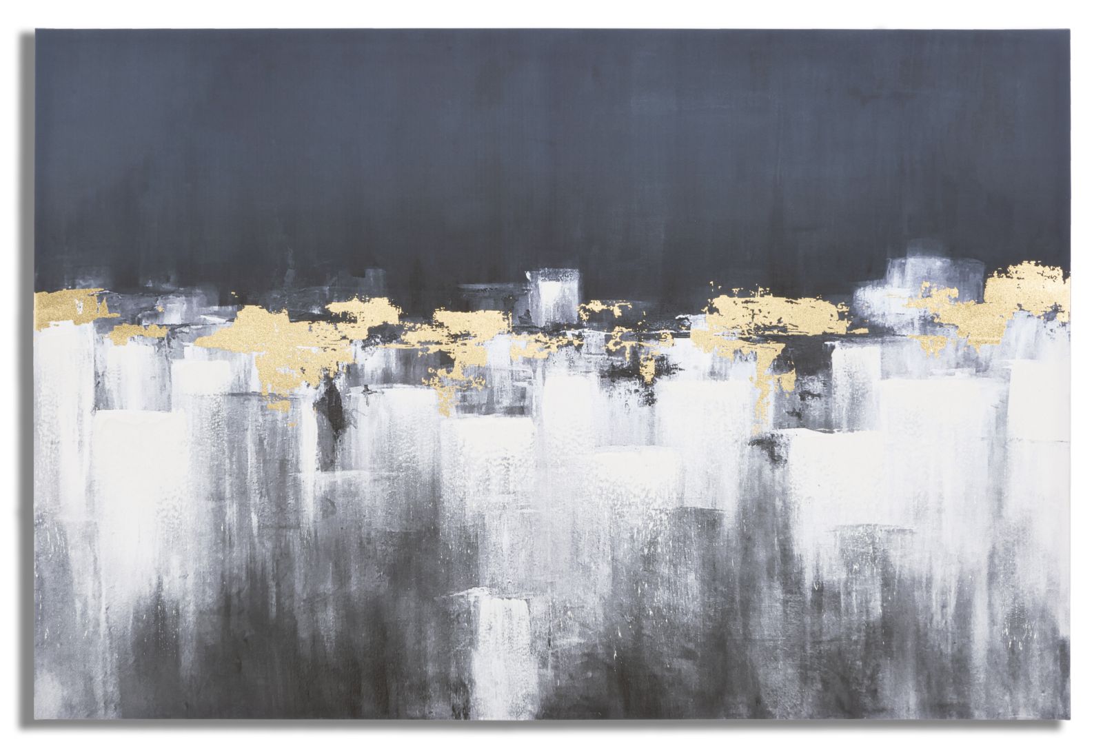 Impression sur toile de cadre en bois de conception abstraite. Le style vaguement impressionniste associé aux éclats dorés donne une touche de mystère et de magie.