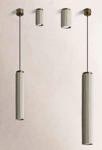 La collection se compose de suspensions, de lampes de table et d'appliques murales.