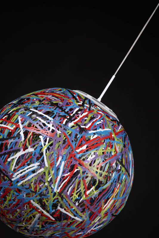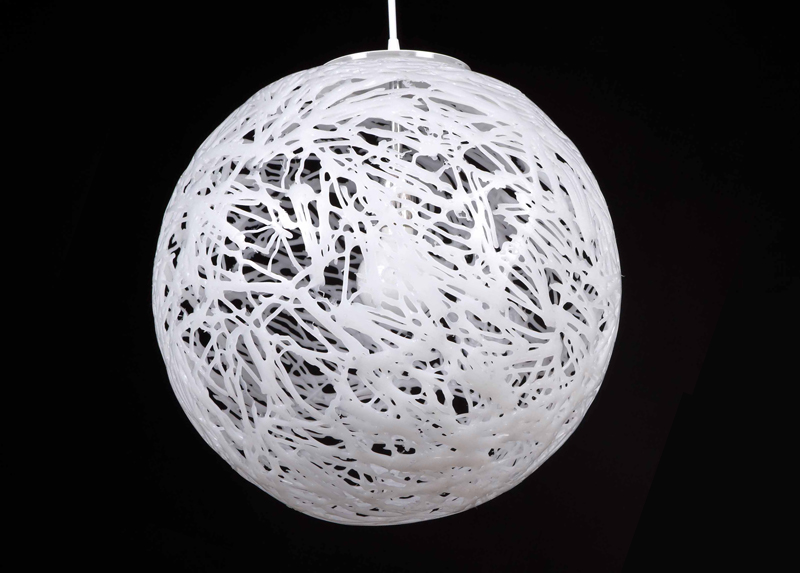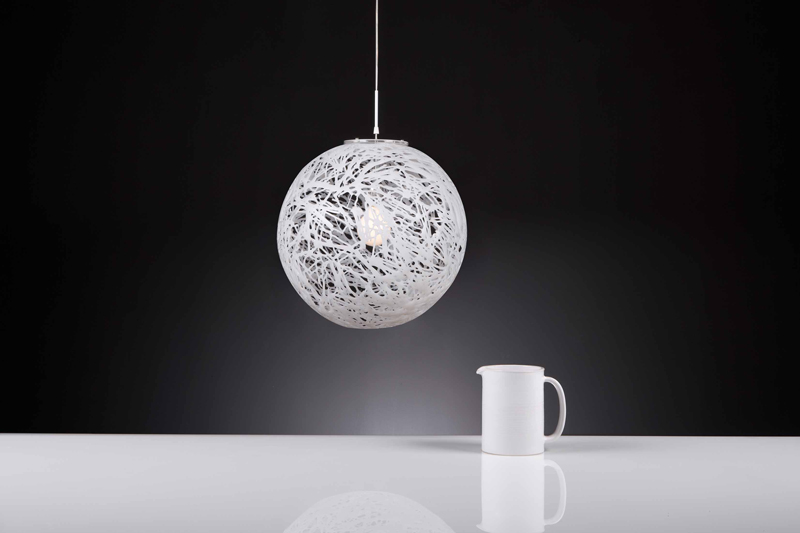 Lampe à suspension avec abat-jour en matière plastique thermofusionnée, dont une partie provient du processus de recyclage.