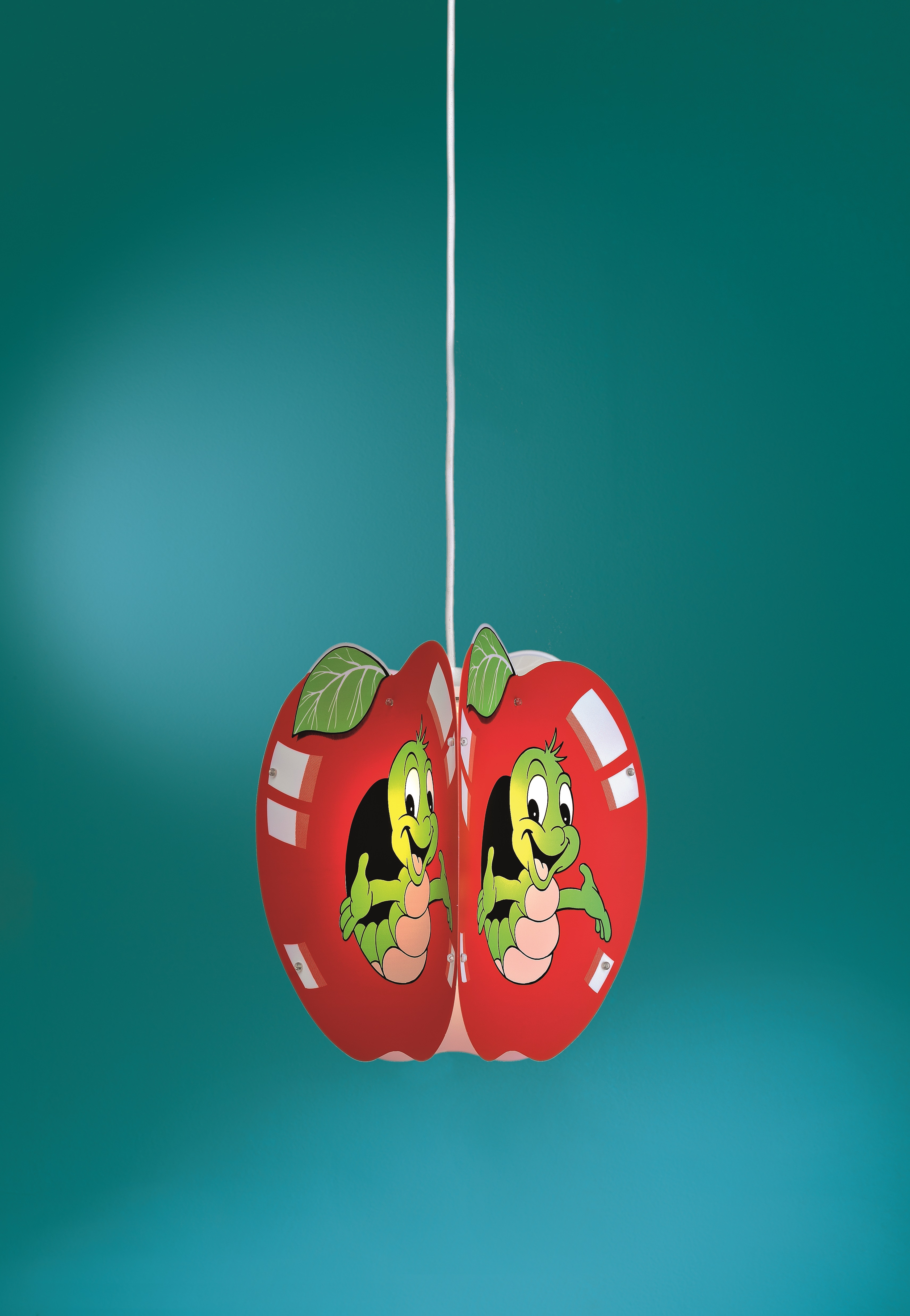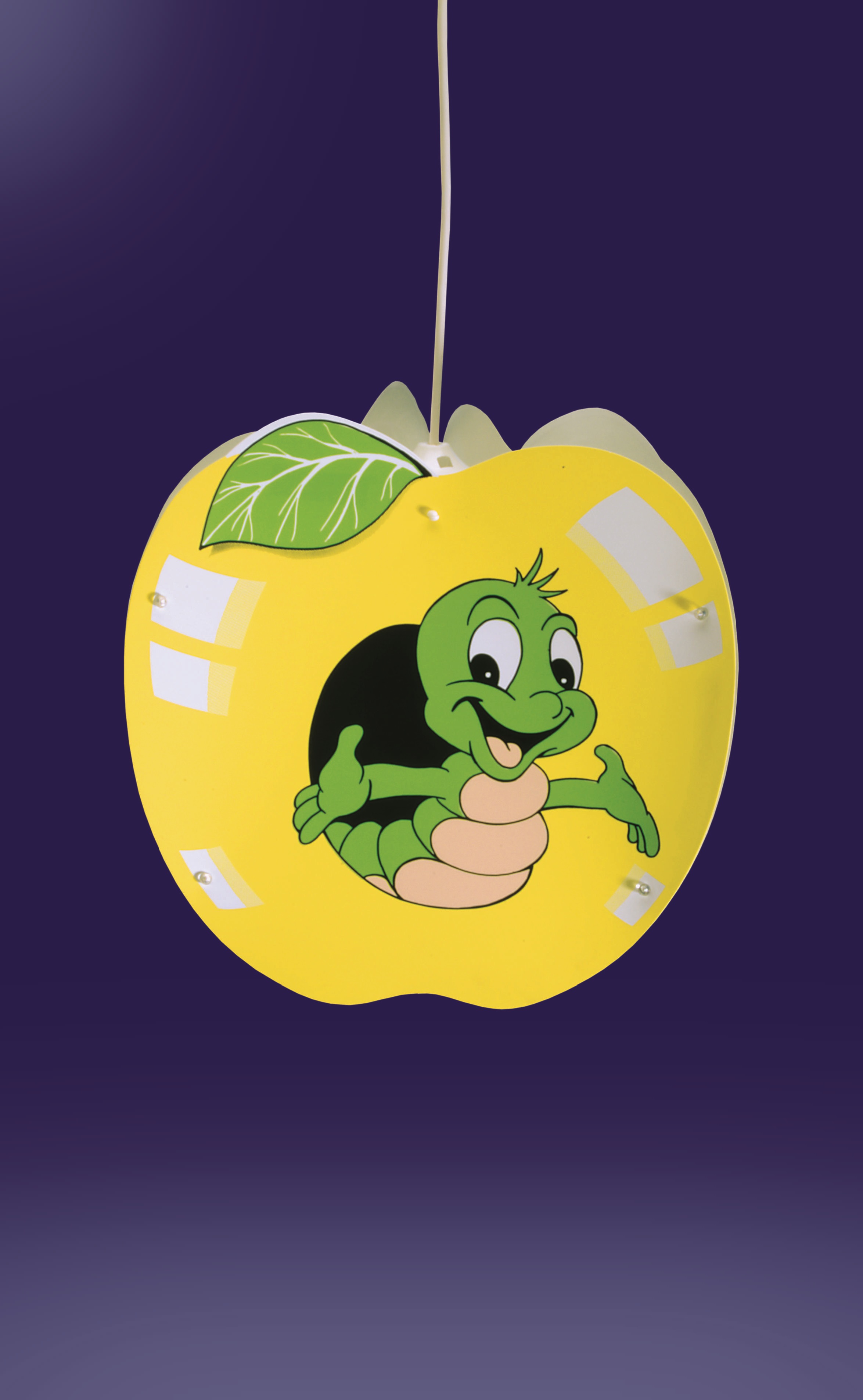 Une compagnie agréable, avec le regard attentif d'une belle chenille qui vit dans une pomme colorée. Le vert, le blanc et le rouge vif sont les couleurs du plaisir.