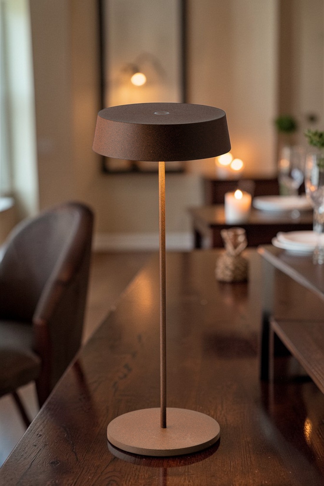 Découvrez la lampe de table LED rechargeable Cocktail Bronze 2,2 W 192 lm 3000 K dimmable IP54 : élégante, pratique et étanche, elle est idéale pour créer une ambiance chaleureuse dans tous les espaces. Disponible chez Tecno Arredo 3 Lighting.