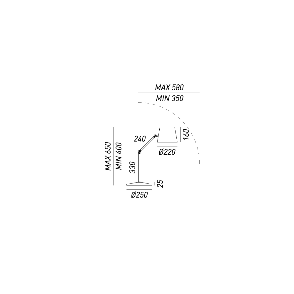 Diffuseur: Ø220 mm x h.160 mm; lampe h.max 650 mm; Base Ø250 mm