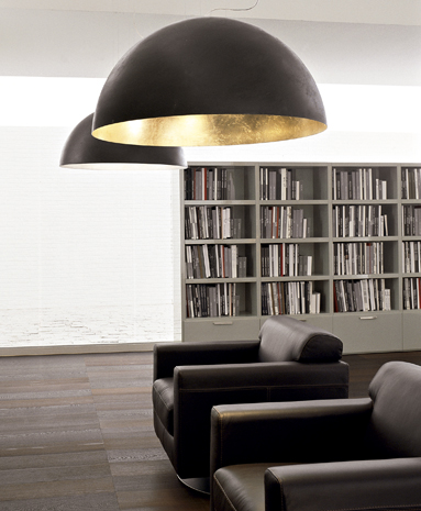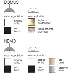 Lampe à suspension en métal, extérieur disponible en blanc ou noir, feuille d'or interne ou feuille d'argent.