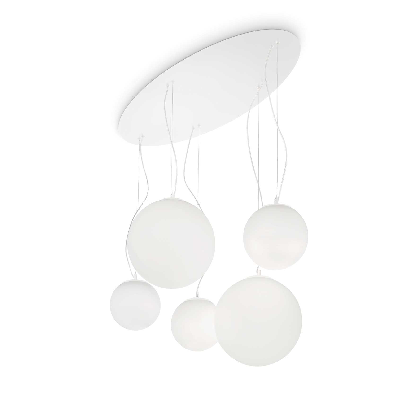 Lampe à suspension avec 5 ampoules disponible dans une seule finition blanche.