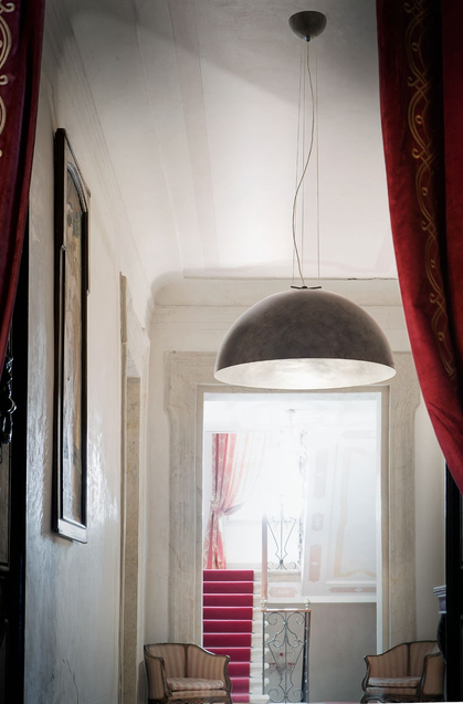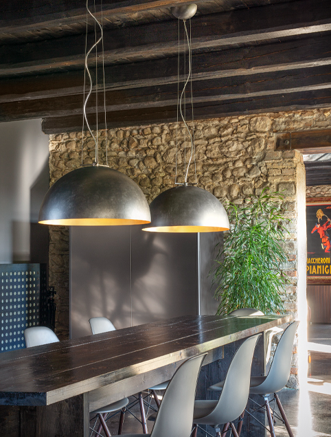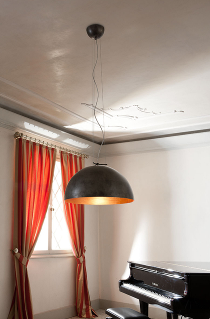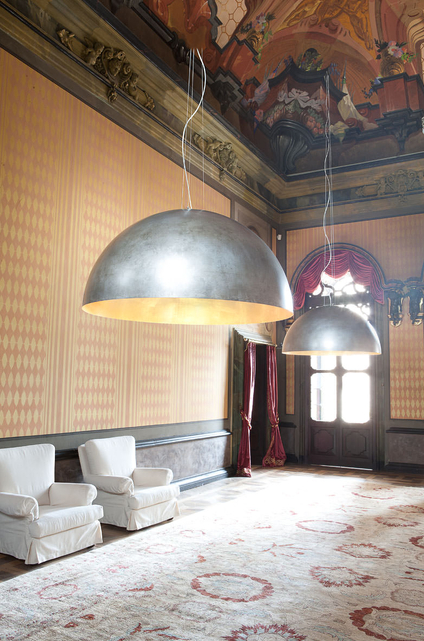 Suspensions de grandes dimensions, caractérisées par une forme hémisphérique en acier.