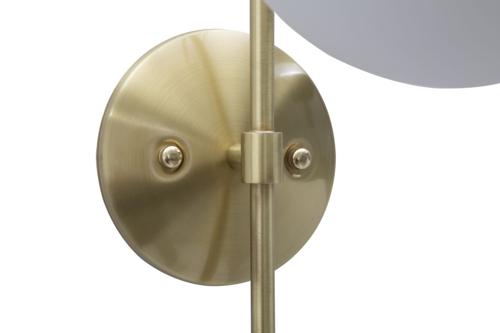 Applique murale en métal doré avec sphère en verre blanc. Les lignes essentielles sont combinées avec l'élégance de l'or pour créer un design unique.