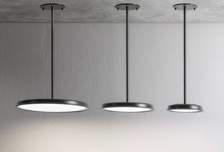 La version suspendue est montée sur un tube rigide, tandis que la version plafond est également disponible avec des accessoires dissimulés pour l'installation sur des surfaces en plaques de plâtre.