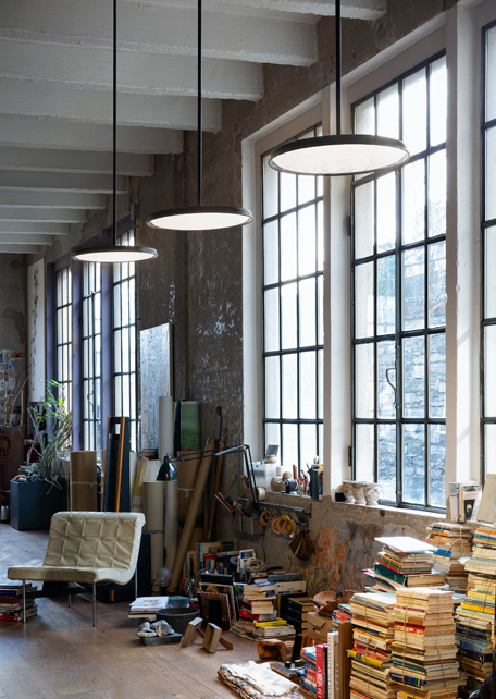 MYMOONS est une série composée de trois appareils de tailles différentes, disponibles à la fois en version suspension avec support rigide et en version plafond.