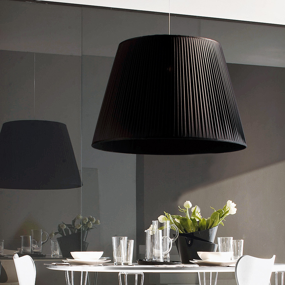 Lampe conique en tissu plissé.