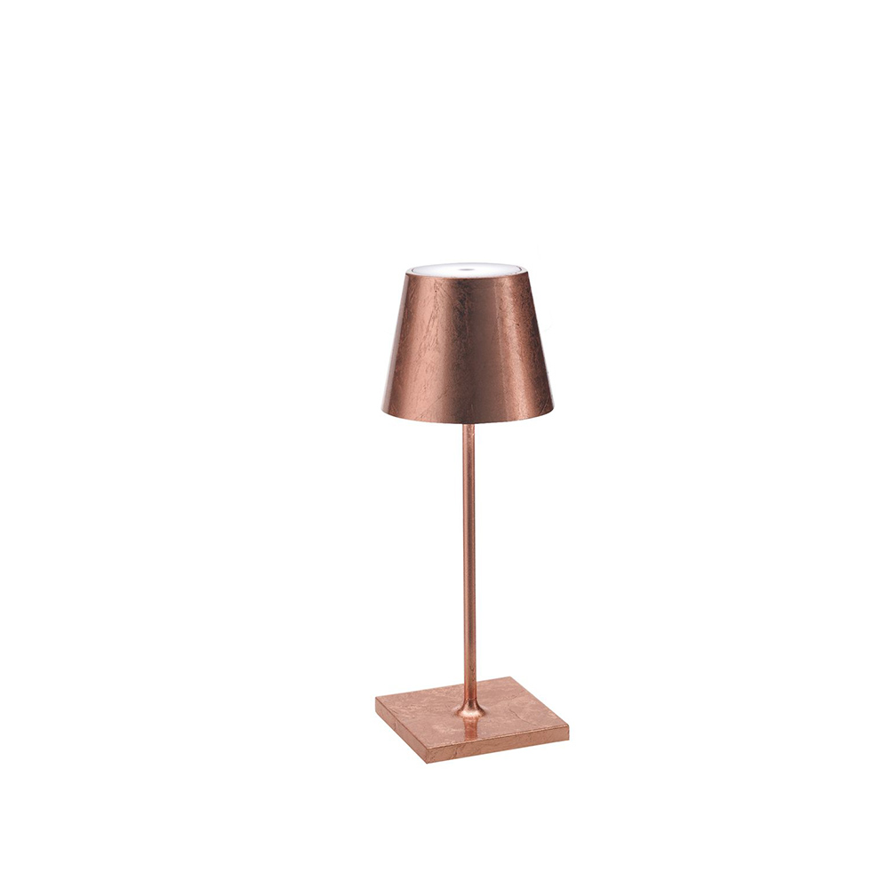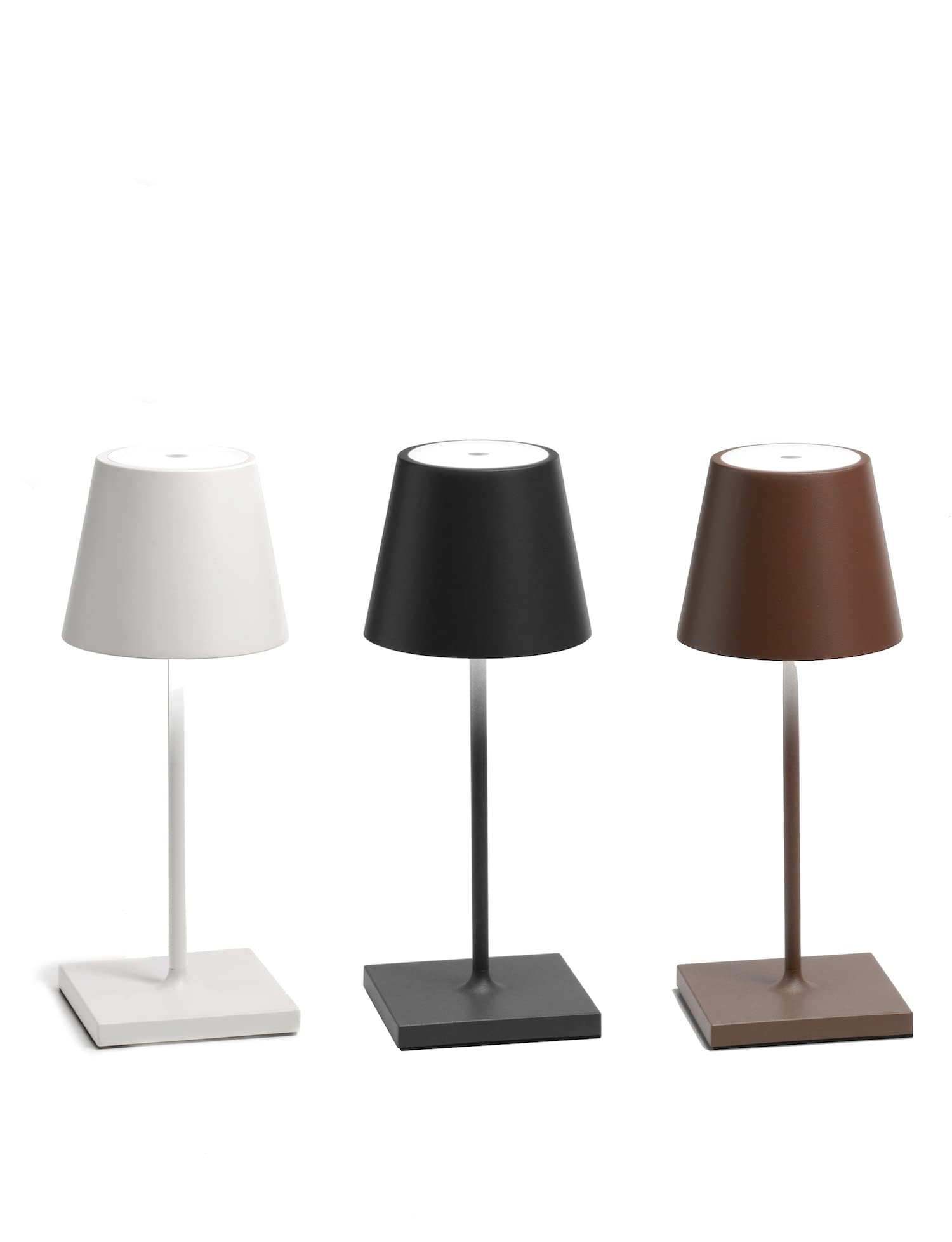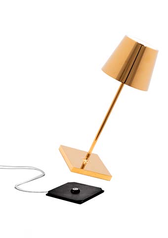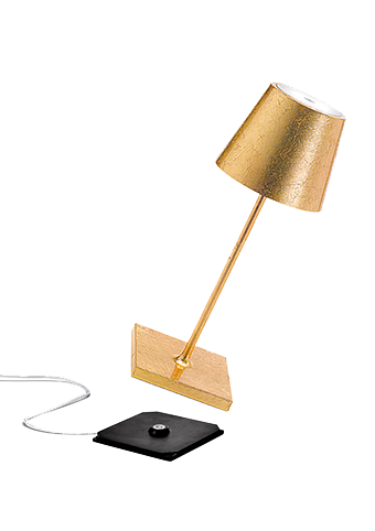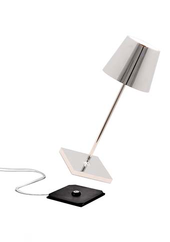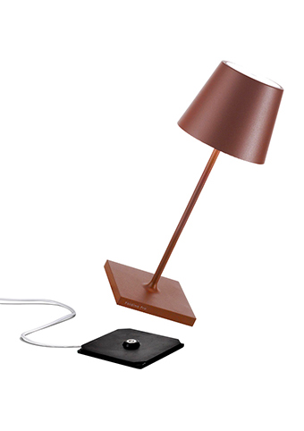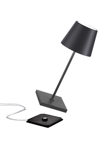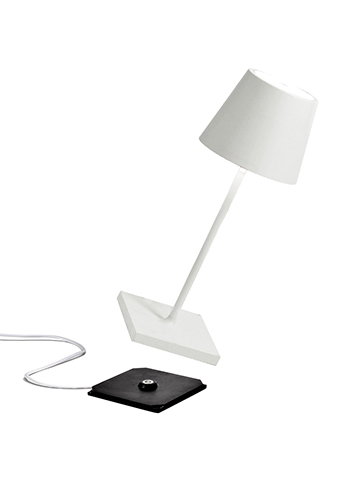 Lampe de table rechargeable, y compris base de charge par contact, avec corps en aluminium peint, diffuseur en polycarbonate et source lumineuse LED