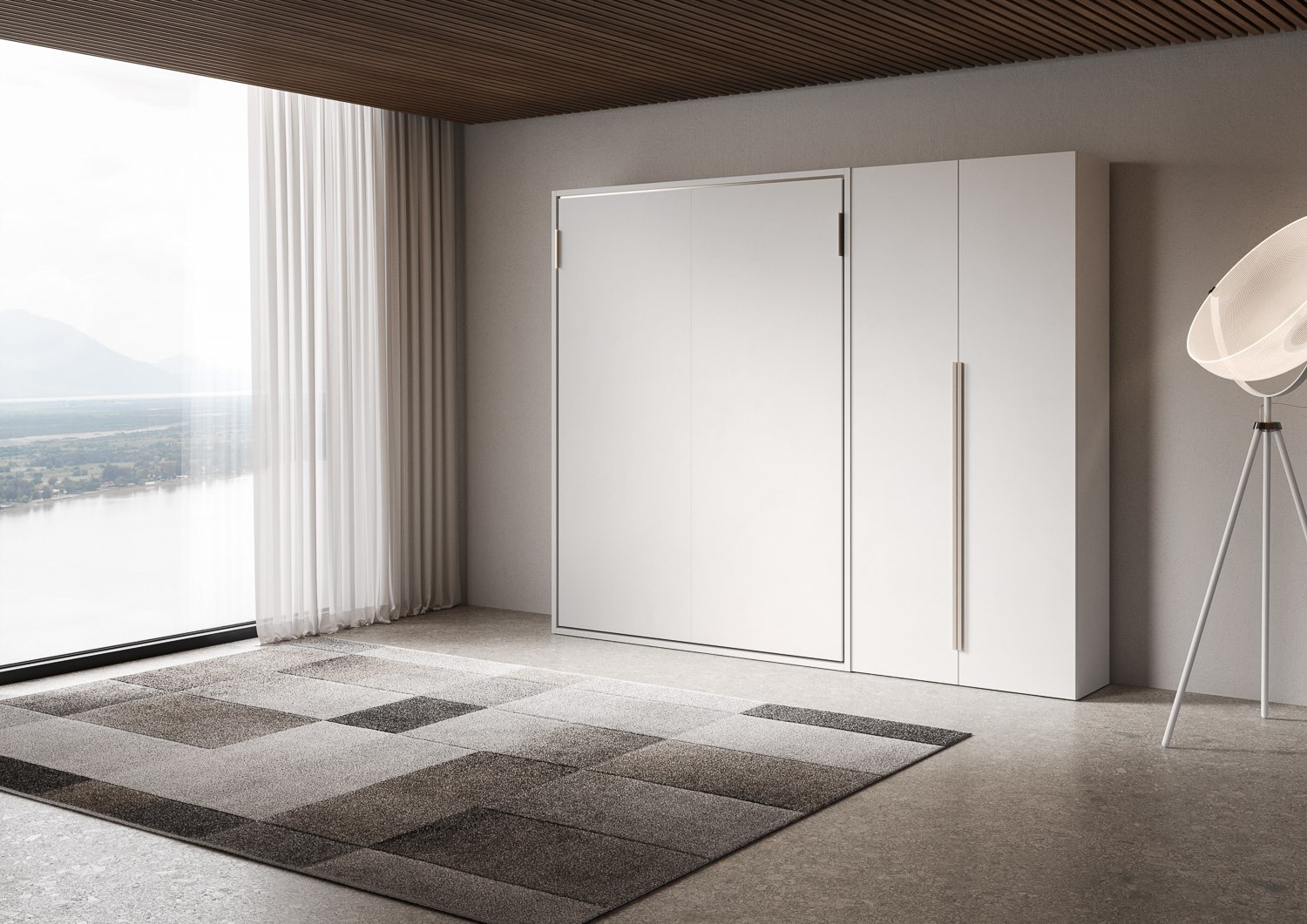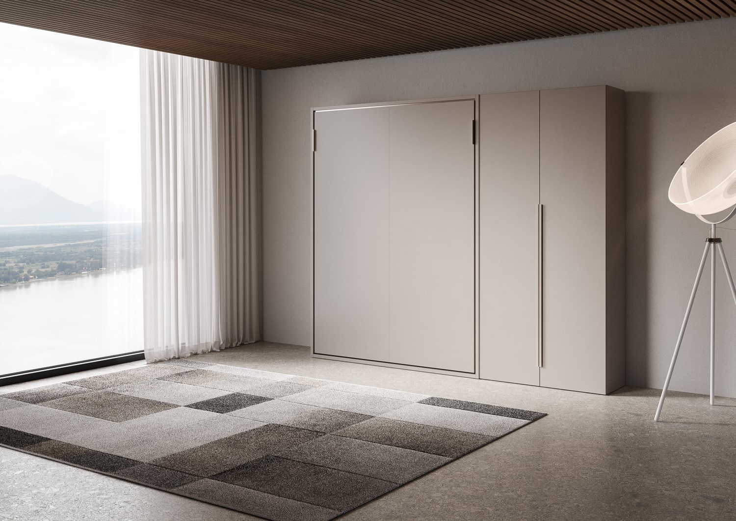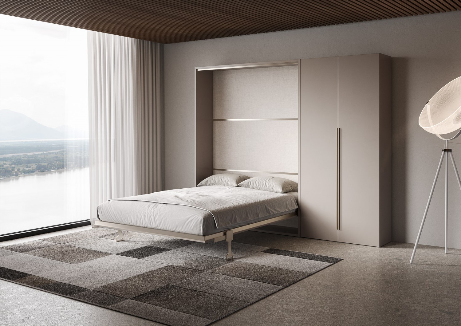 Lit double escamotable Versia de 140 cm avec armoire 2 portes en argile à droite