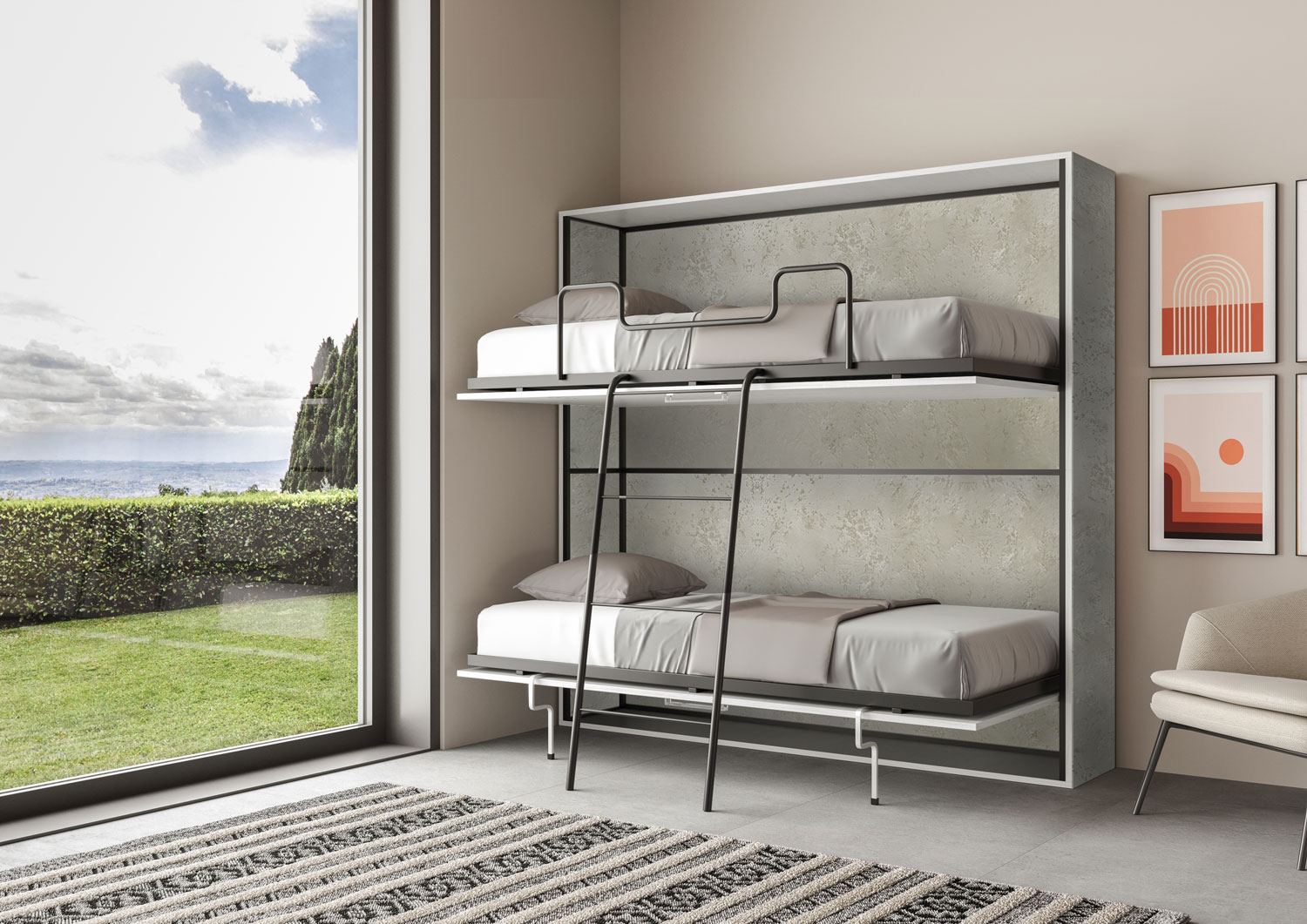 | Matériel | Lit escamotable superposé horizontal KANDO avec matelas inclus est une solution peu encombrante pratique et originale qui permet de tirer le meilleur parti de chaque centimètre de surface, offrant la possibilité de transformer un salon en une zone de couc |