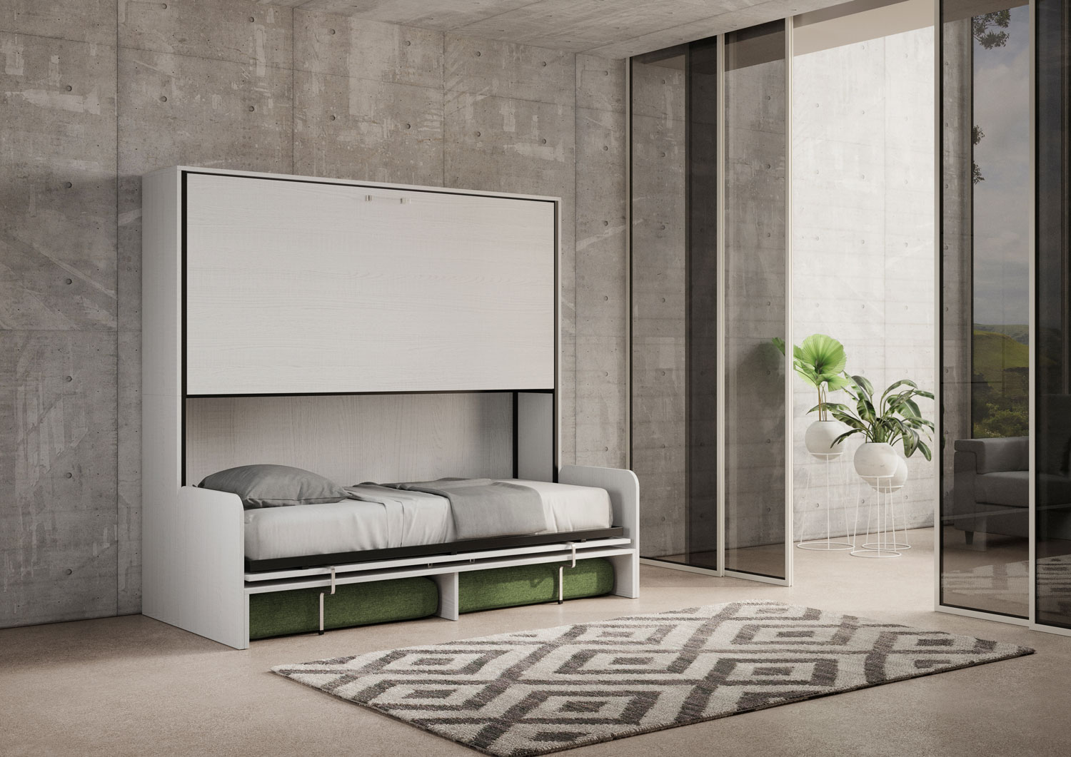 | Matériel | Lit escamotable superposé horizontal KANDO SOFÀ 2 places avec canapé intégré. Ce lit gain de place est idéal pour le salon : il sert de canapé confortable en journée et se transforme rapidement en un lit confortable lorsque nécessaire, offrant à la fois c |