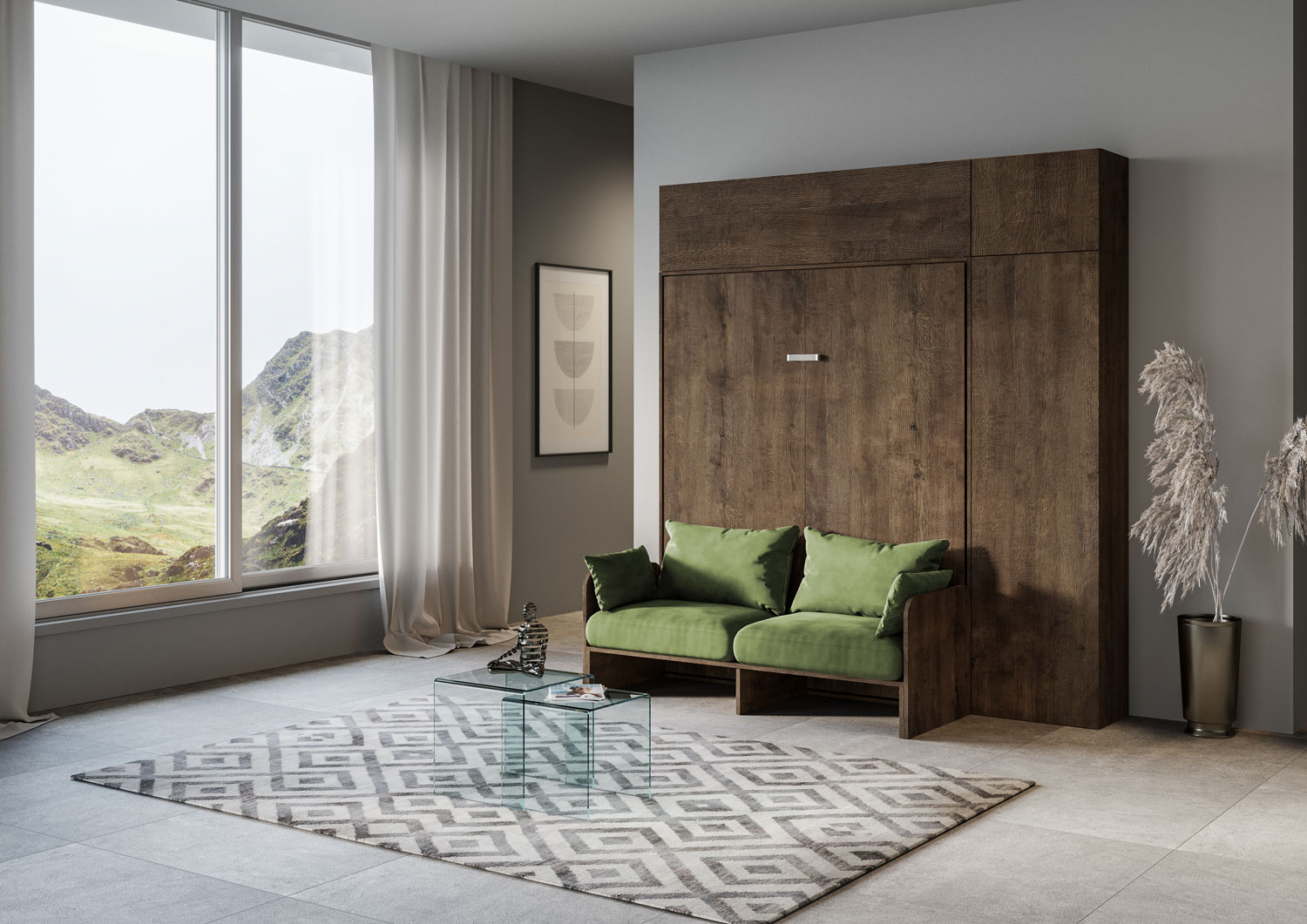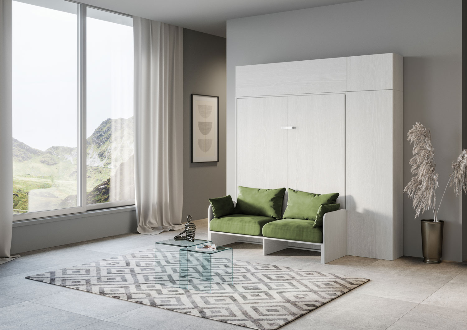 | Matériel | Armoire lit escamotable vertical double 160 KENTARO avec canapé proposé dans la version avec une colonne de rangement et deux éléments hauts horizontaux avec ouverture vasistas de la ligne ISOKA. Une solution extrêmement pratique et fonctionnelle pour un |