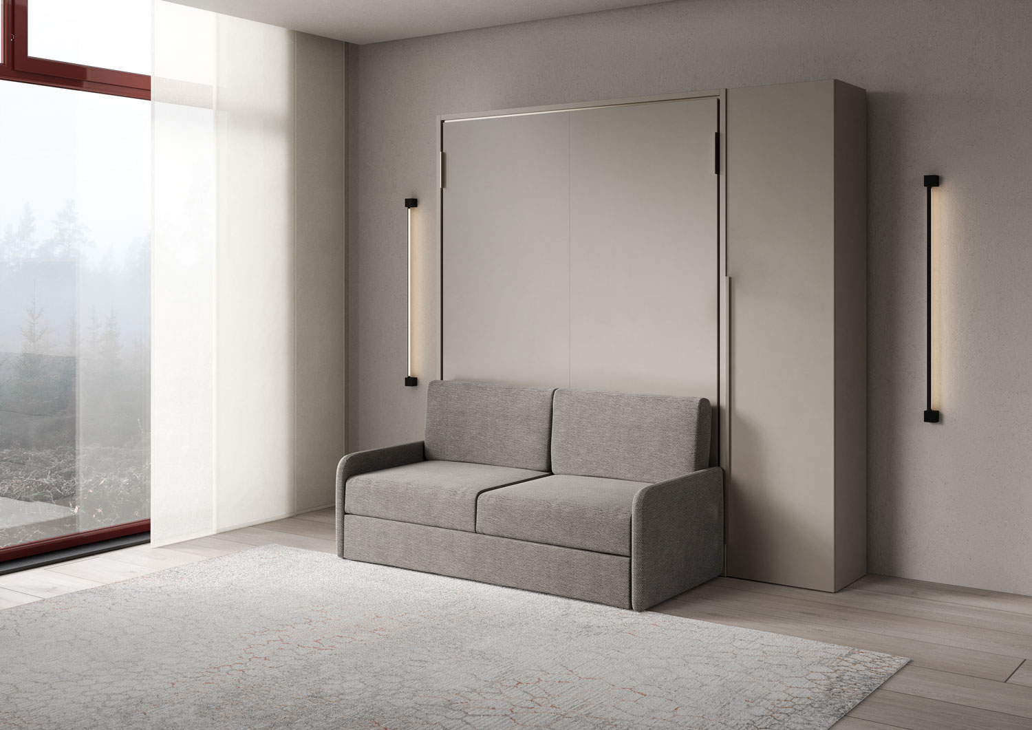 Lit double escamotable vertical de 160 cm Versia Sofà avec canapé et armoire 1 porte à droite Clay