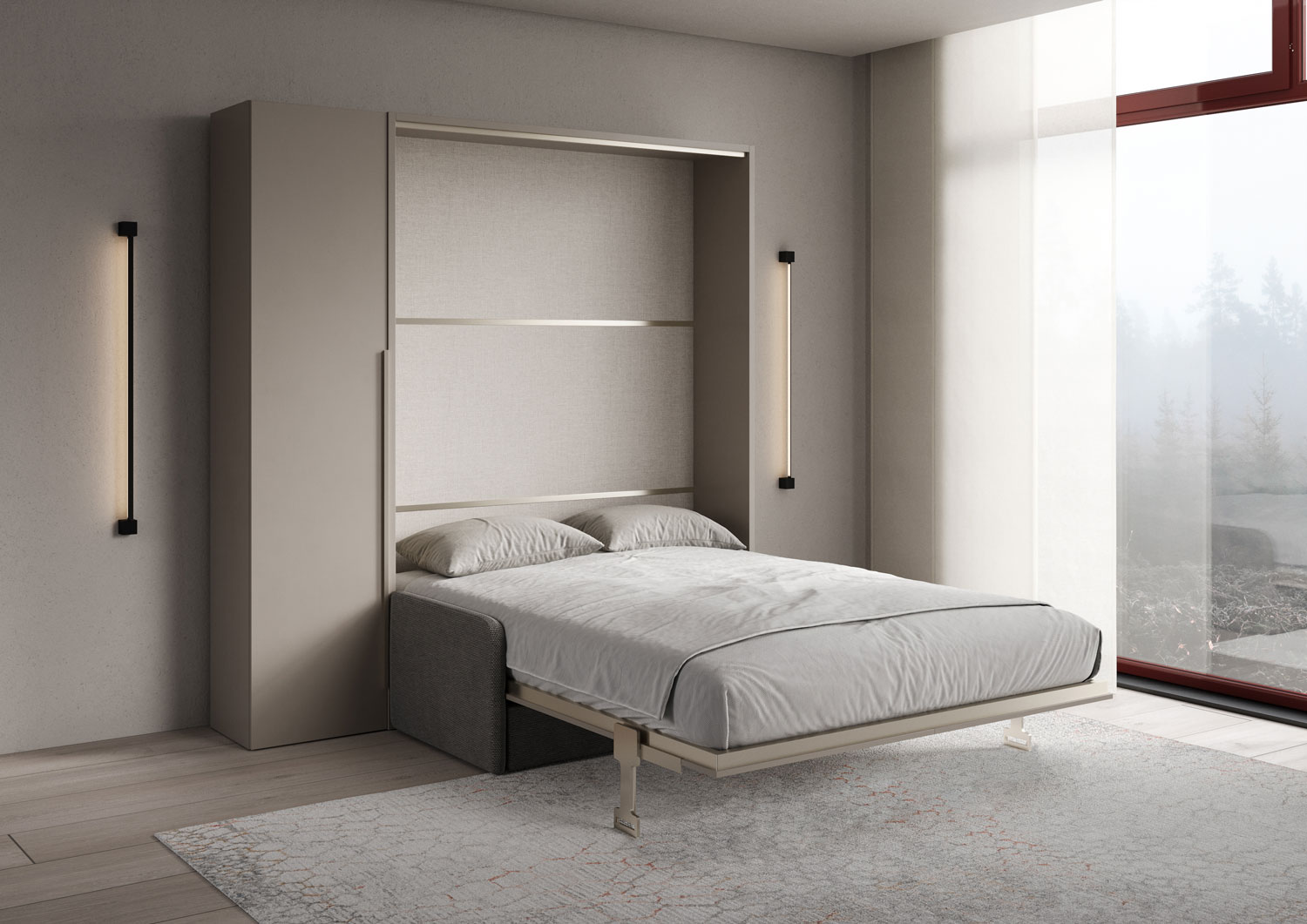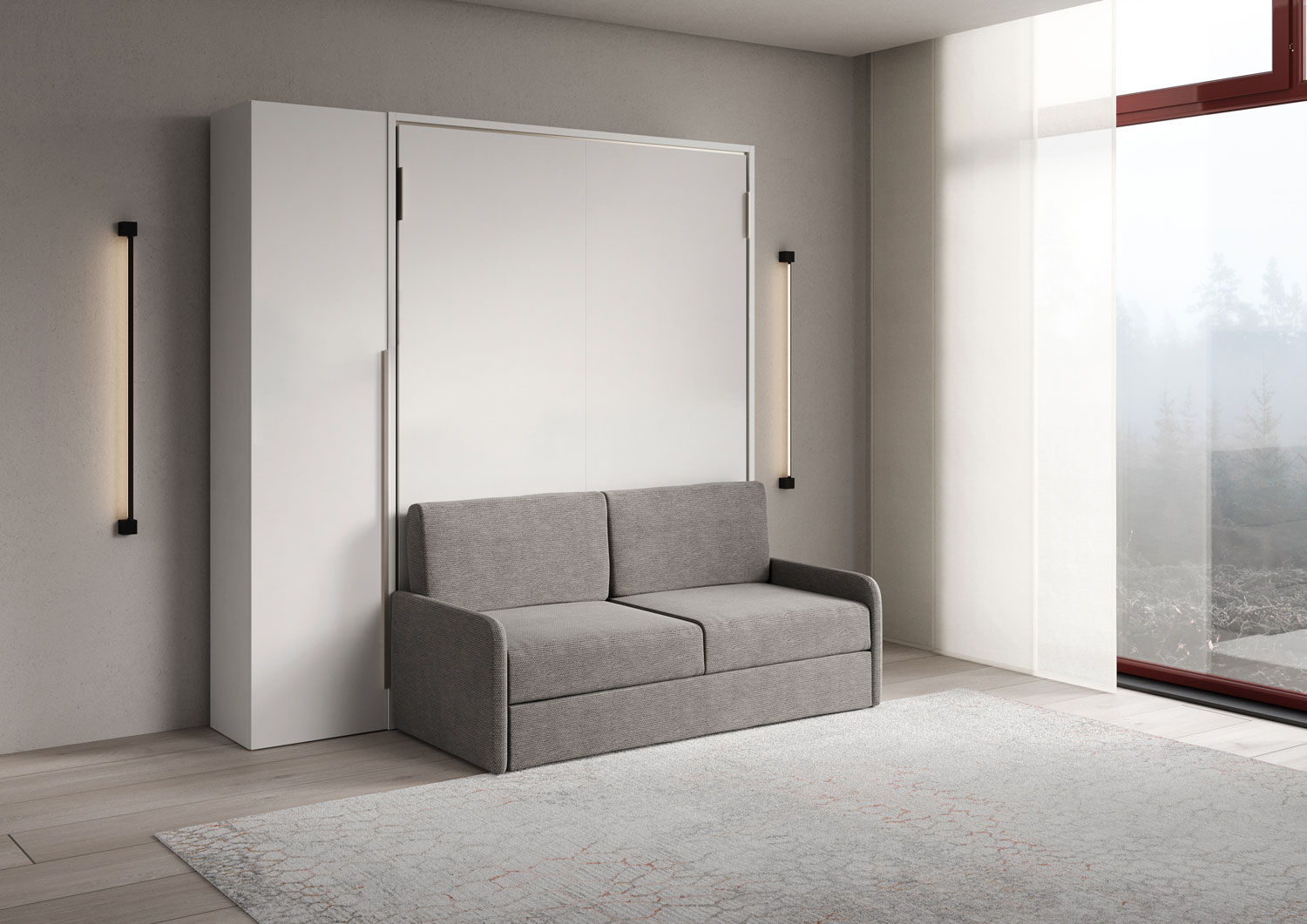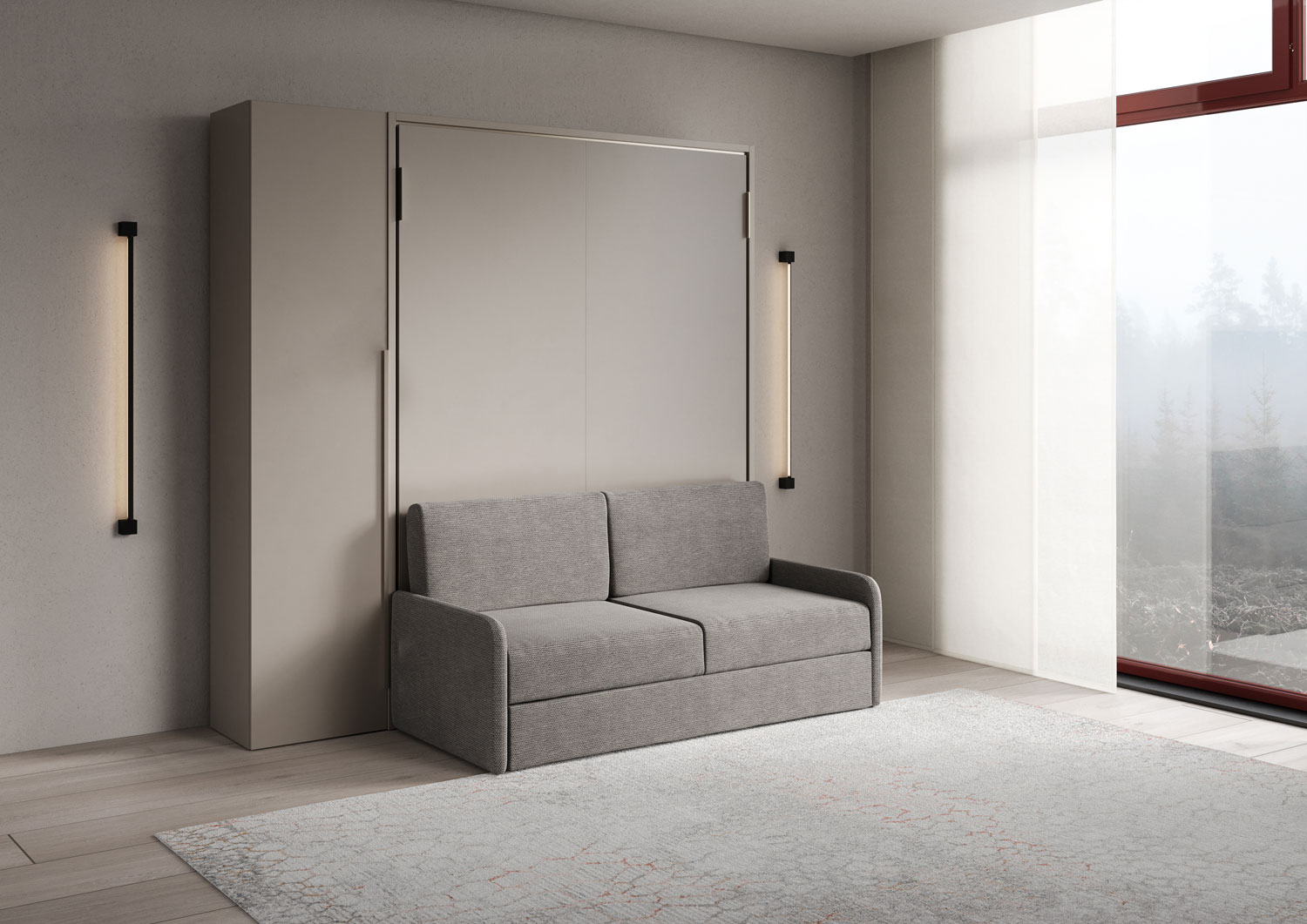 Lit double escamotable vertical de 160 cm Versia Sofà avec canapé et armoire 1 porte gauche Clay