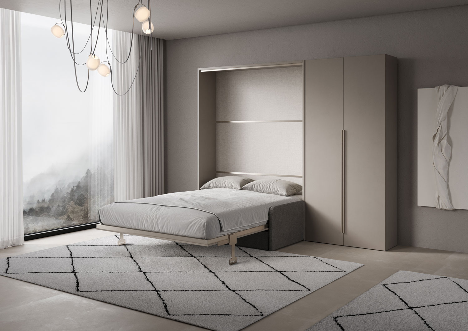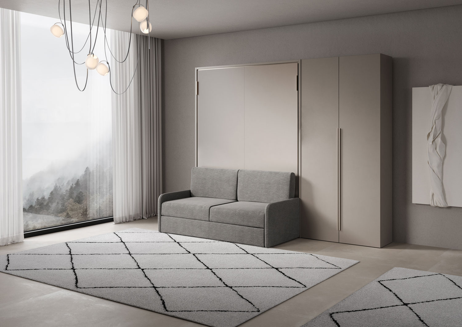Lit double escamotable vertical de 160 cm Versia Sofà avec canapé et armoire 2 portes à droite Clay