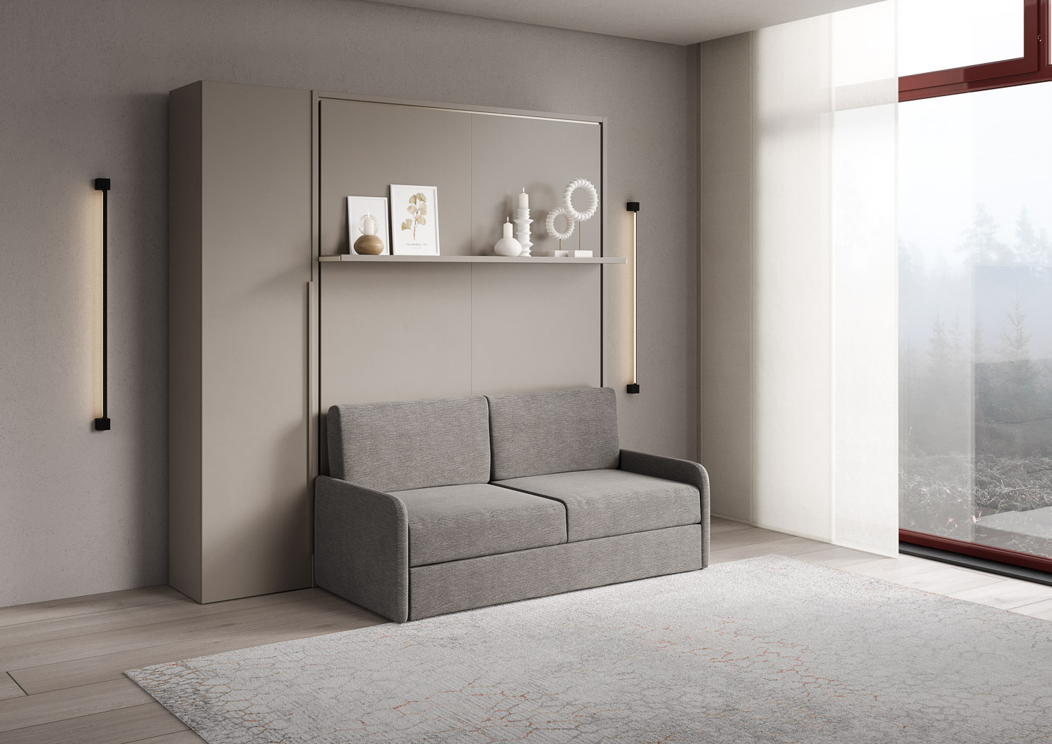 Lit double escamotable vertical de 160 cm Versia Sofà avec canapé, étagère et armoire 1 porte à gauche Clay