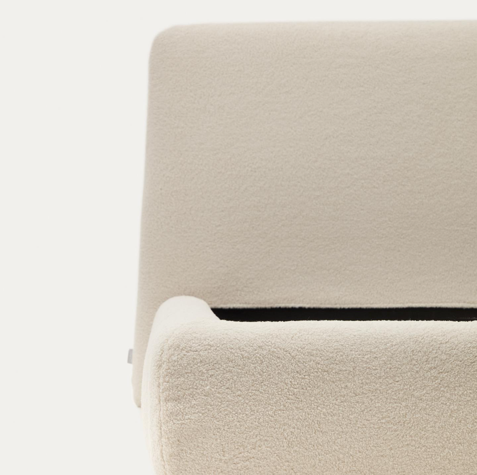 L'équipe Kave Home a créé le lit Martina pour le repos et le respect de la planète. Sa housse est 100 % polyester avec une finition effet peau d'agneau pour plus de douceur.