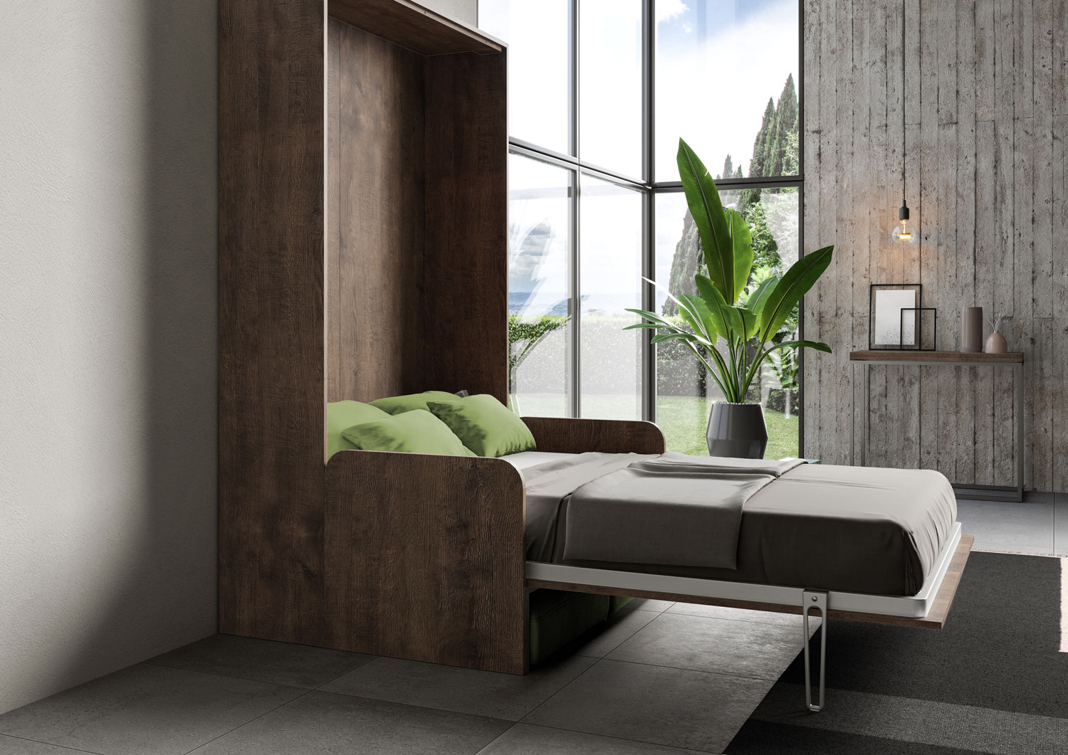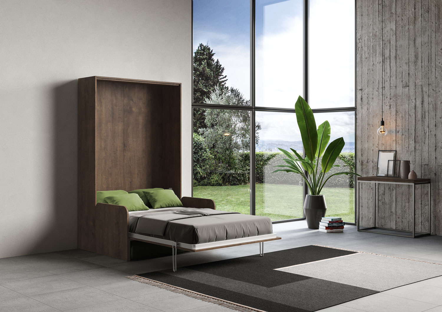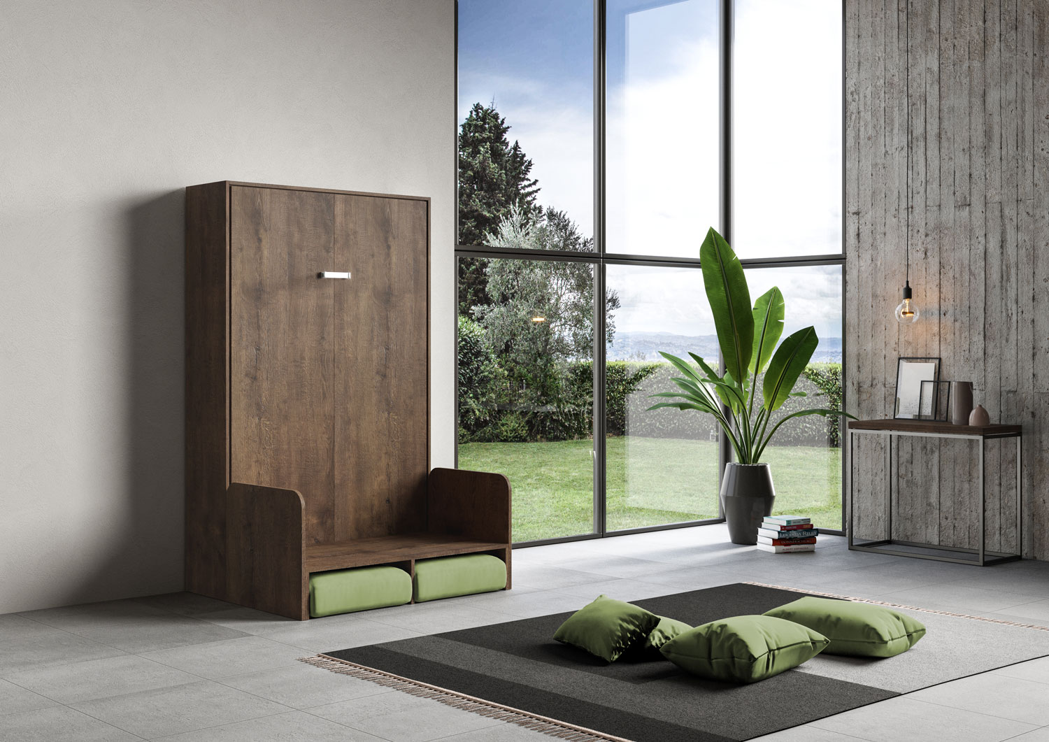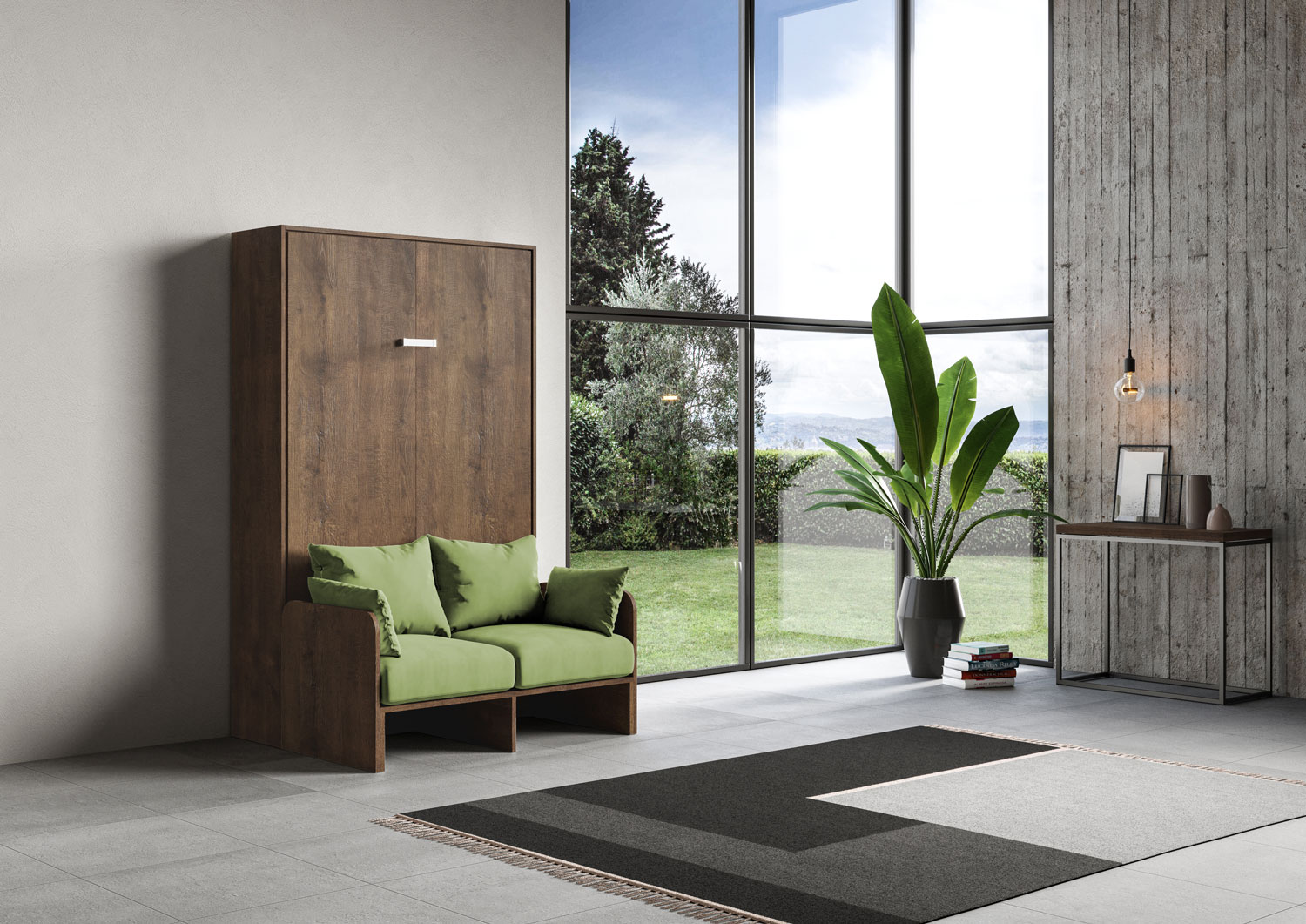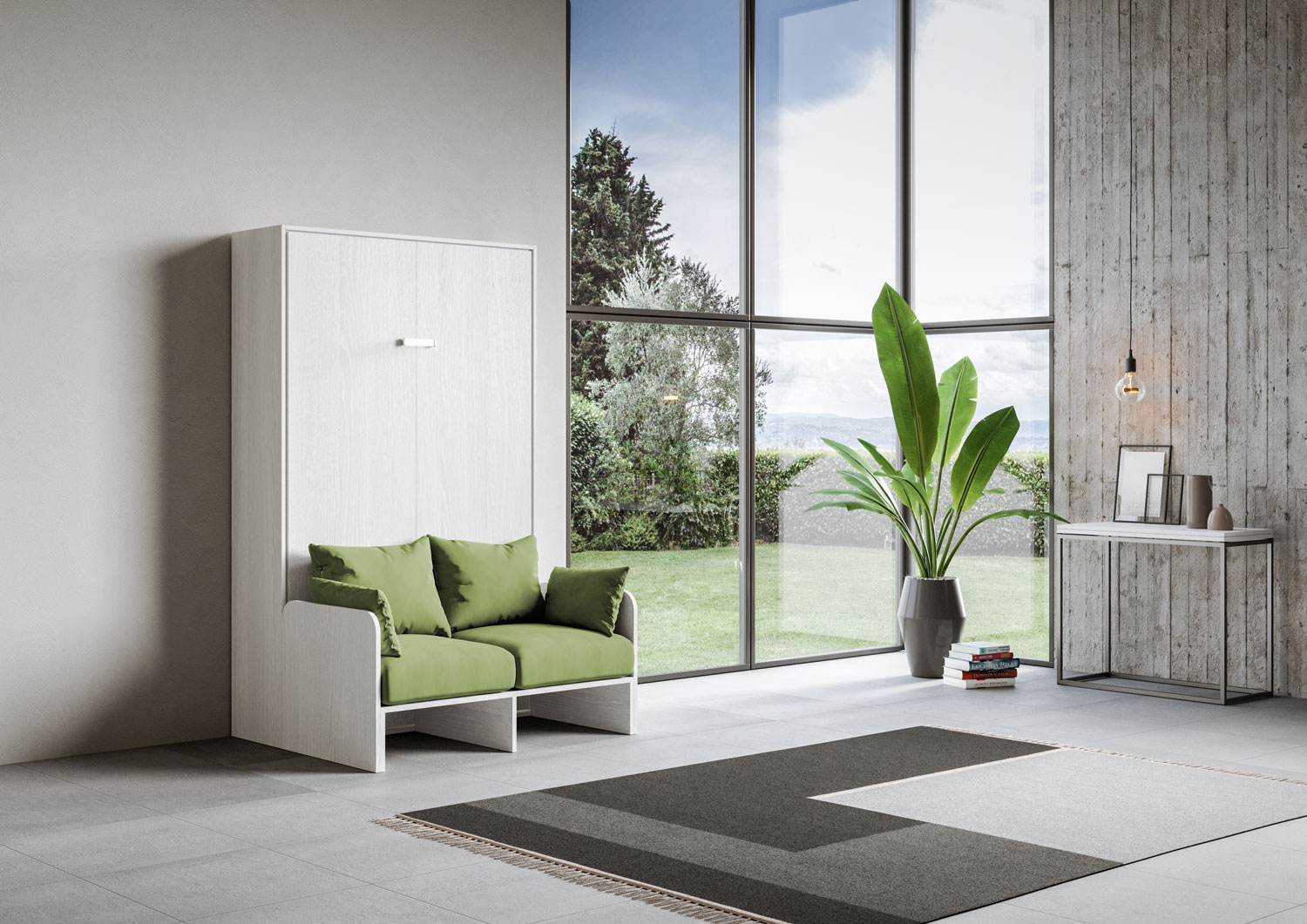 | Matériel | De nos jours, quand la modernité nous pousse dans des espaces de vie toujours plus petits, le modèle d’armoire lit escamotable vertical 1 place et demi 120 KENTARO avec canapé est proposé, une idée originale qui transforme en quelques geste le salon en un |