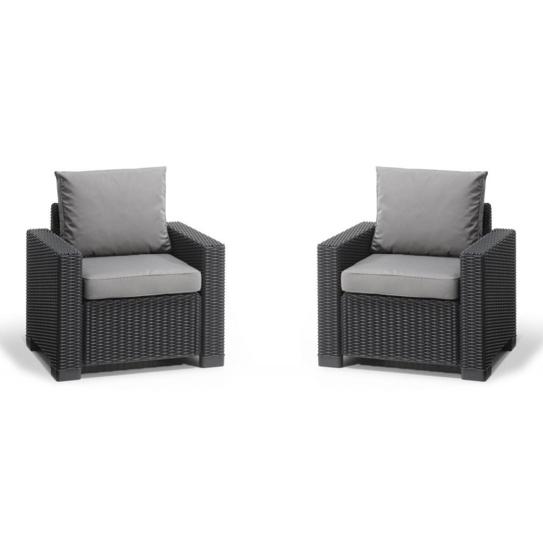 Fabriqués en résine tressée effet rotin durable, ces fauteuils se distinguent par la qualité des matériaux qui garantissent une durabilité et une résistance à long terme aux agents atmosphériques et aux rayons UV.