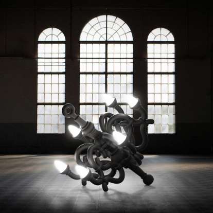 Fallen Chandelier est une lampe sans fil rechargeable de taille M adaptée aux environnements intérieurs, conçue par Studio Job. Influencé par les courbes classiques de Thonet du XIXe siècle, cet objet voyage dans le temps pour être le protagoniste absolu dans chaque endroit où il vit et vous accompagner dans un rêve d'élégance intemporelle. Il peut être réglé à distance par télécommande.